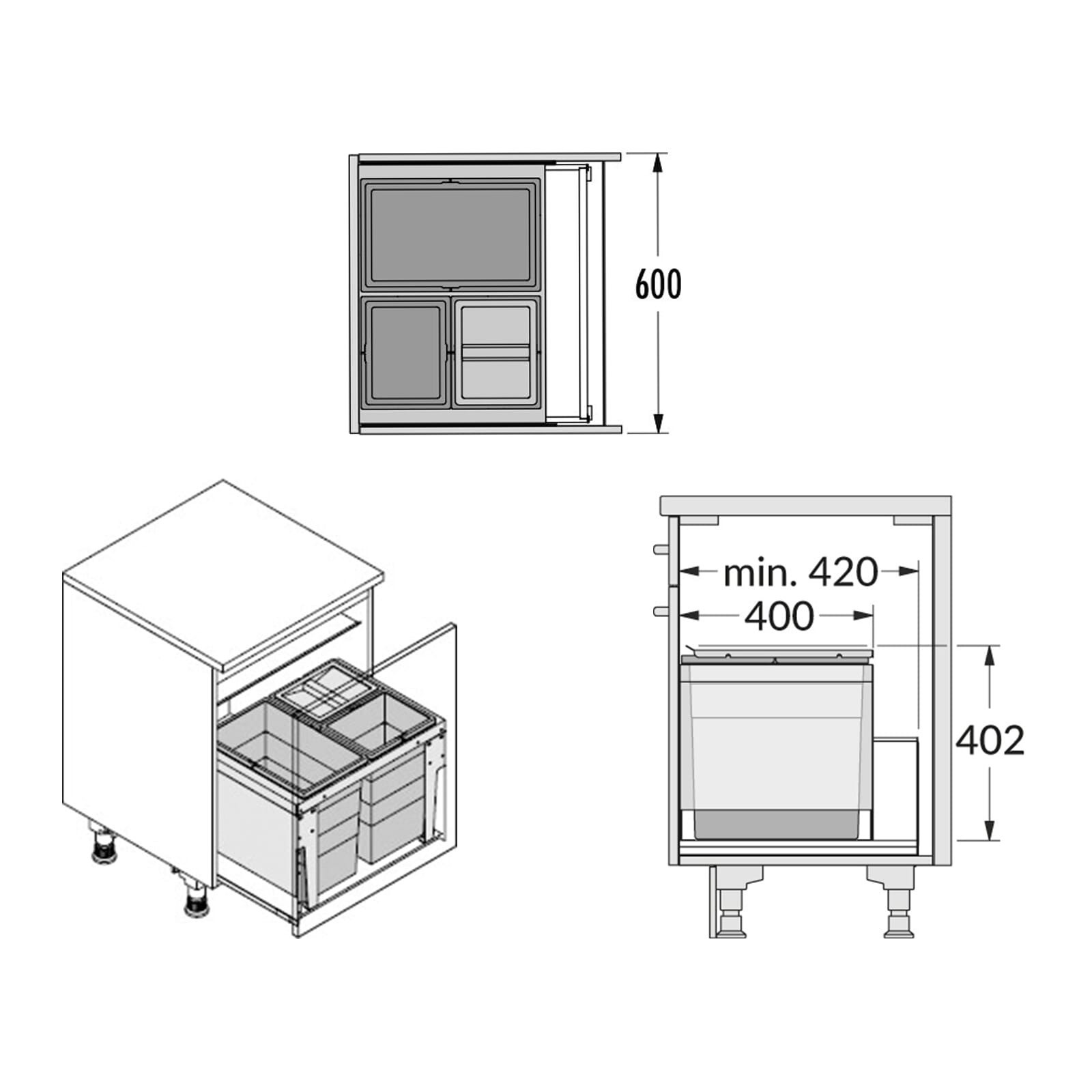 Cos de gunoi incorporat sub chiuveta Hailo Triple XL 3631691