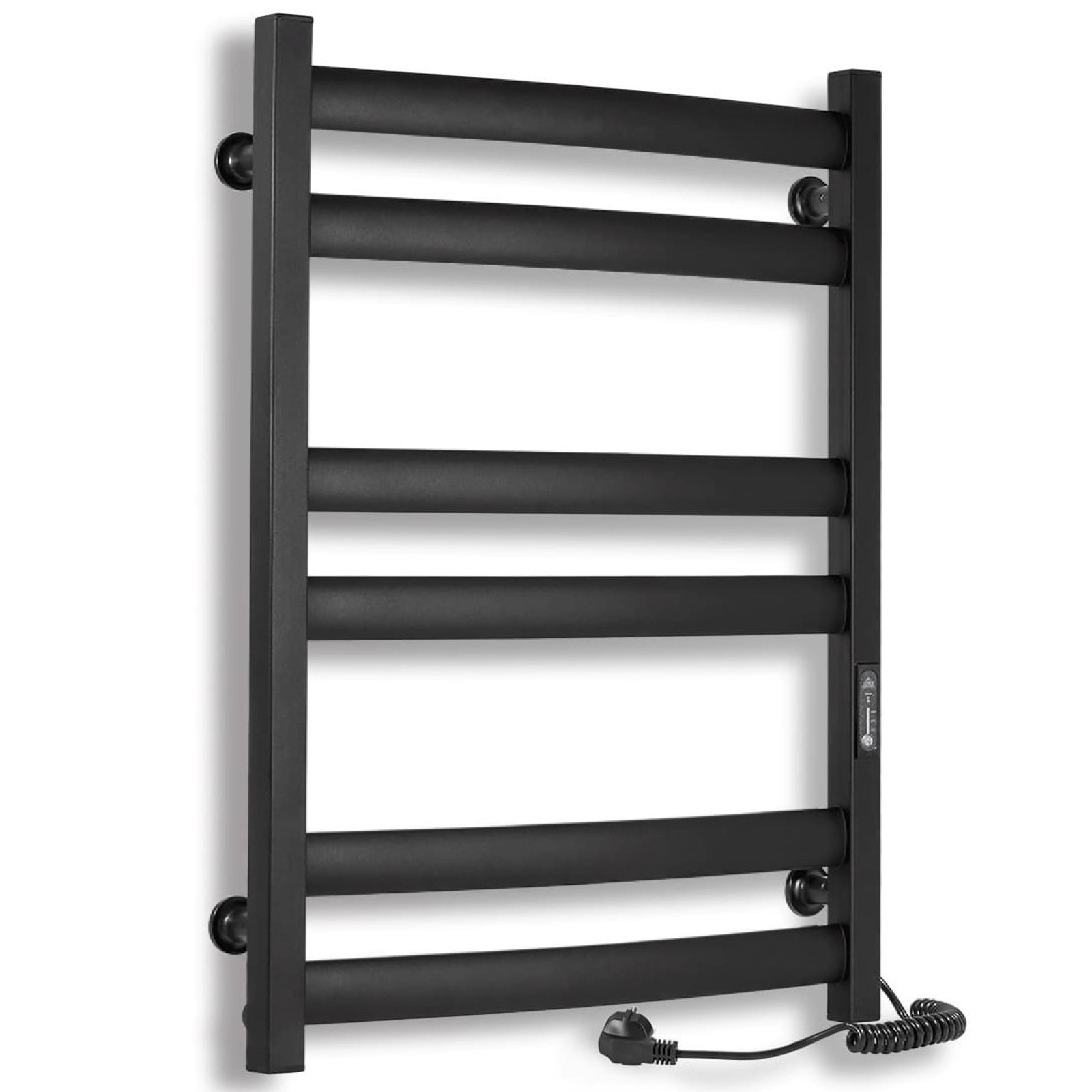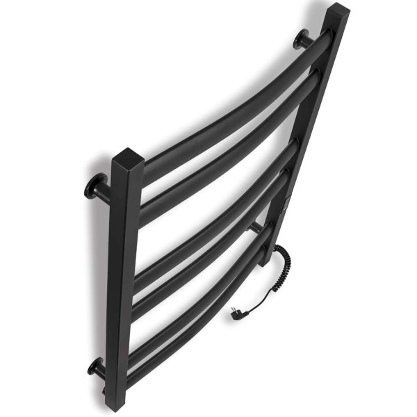 Calorifer baie portprosop electric Laris Atlant CK6 500x700 Black R este dotat cu un regulator de temperatură bazat pe microprocesor (control prin apăsare de buton). Pentru a porni funcționarea, setați temperatura dorită. Un senzor de temperatură monitorizează temperatura suprafeței suportului încălzit pentru prosoape, prevenind supraîncălzirea. Caracteristicile includ un economizor de mod (care restabilește automat modul programat de utilizator atunci când este oprit), un temporizator de oprire de 3 ore și indicatori de funcționare color. Temperatura suprafeței este de 50±5°C. Suportul măsoară 30x30 mm și are o grosime de 1,5 mm; traversa ovală măsoară 32x18 mm și are o grosime de 1,5 mm.