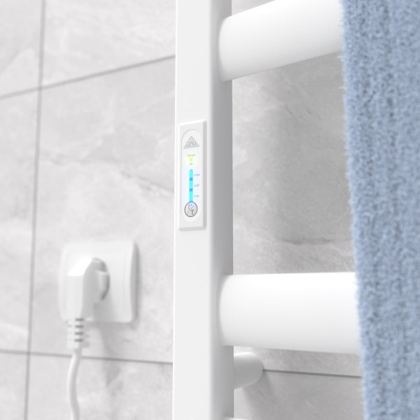 Calorifer baie portprosop electric Laris Atlant CK6 500x700 L este dotat cu un regulator de temperatură bazat pe microprocesor (control prin apăsare de buton). Pentru a porni funcționarea, setați temperatura dorită. Un senzor de temperatură monitorizează temperatura suprafeței suportului încălzit pentru prosoape, prevenind supraîncălzirea. Caracteristicile includ un economizor de mod (care restabilește automat modul programat de utilizator atunci când este oprit), un temporizator de oprire de 3 ore și indicatori de funcționare color. Temperatura suprafeței este de 50±5°C. Suportul măsoară 30x30 mm și are o grosime de 1,5 mm; traversa ovală măsoară 32x18 mm și are o grosime de 1,5 mm.