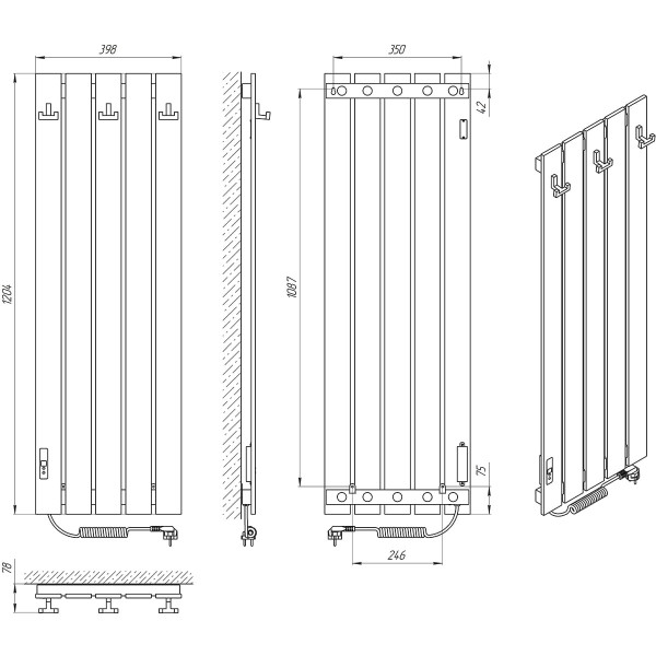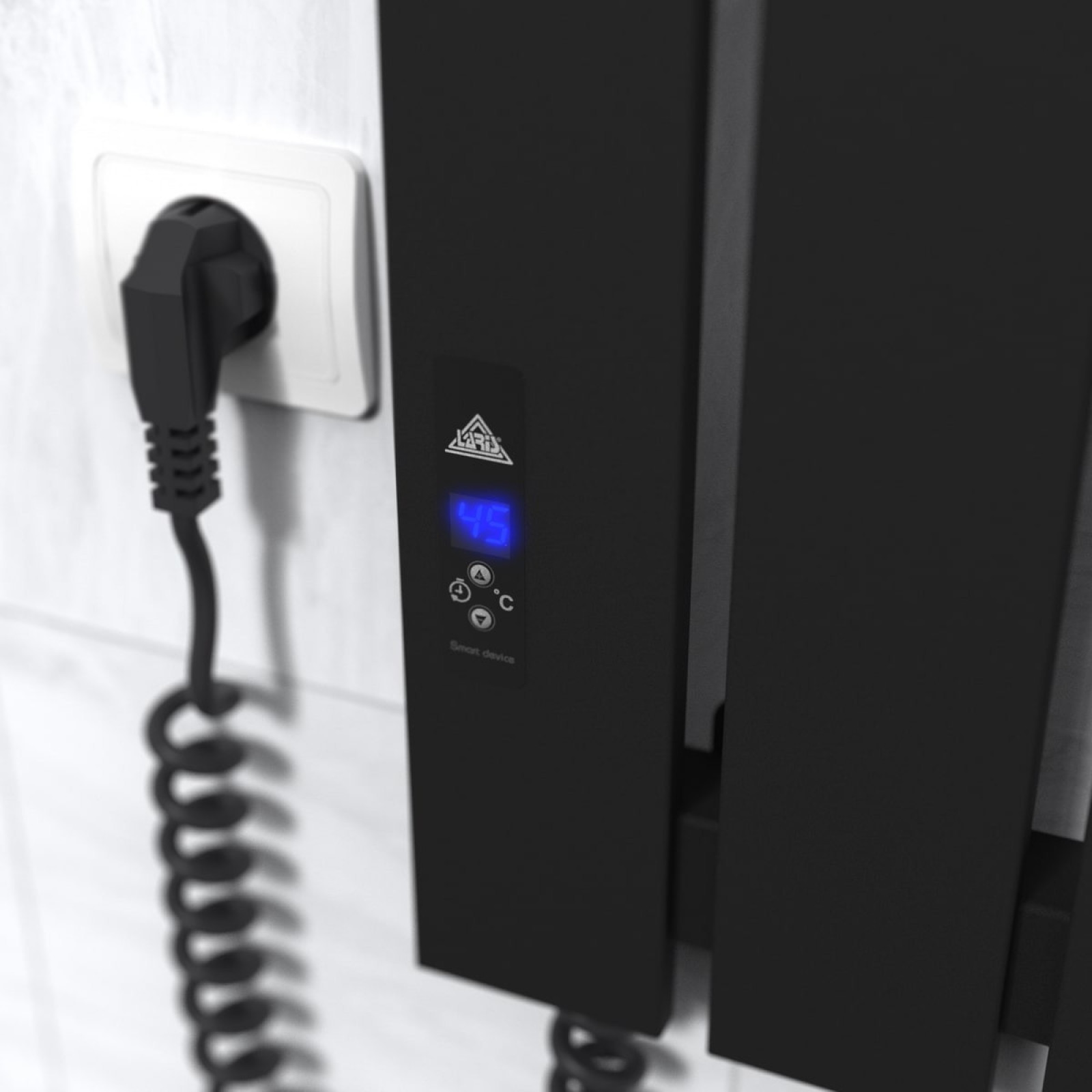 Calorifer baie portprosop electric Laris Boston CK5 398х1200 Black L are termostat cu microprocesor (control prin buton) pentru a controla încălzirea. Pentru a porni funcționarea, pur și simplu setați temperatura dorită în grade. Un senzor de temperatură monitorizează temperatura suprafeței suportului încălzit pentru prosoape, prevenind supraîncălzirea. Avantajele controlerului includ reducerea automată a puterii (mod ECO), un temporizator de oprire (1-12 ore) și o siguranță pentru copii. Temperatura suprafeței produsului este de 50±5°C. Stand 40x30, grosime 1,5 mm, traversă 70x11, grosime 1,5 mm. Stand 40x30, grosime 1,5 mm, traversă 70x11, grosime 1,5 mm.