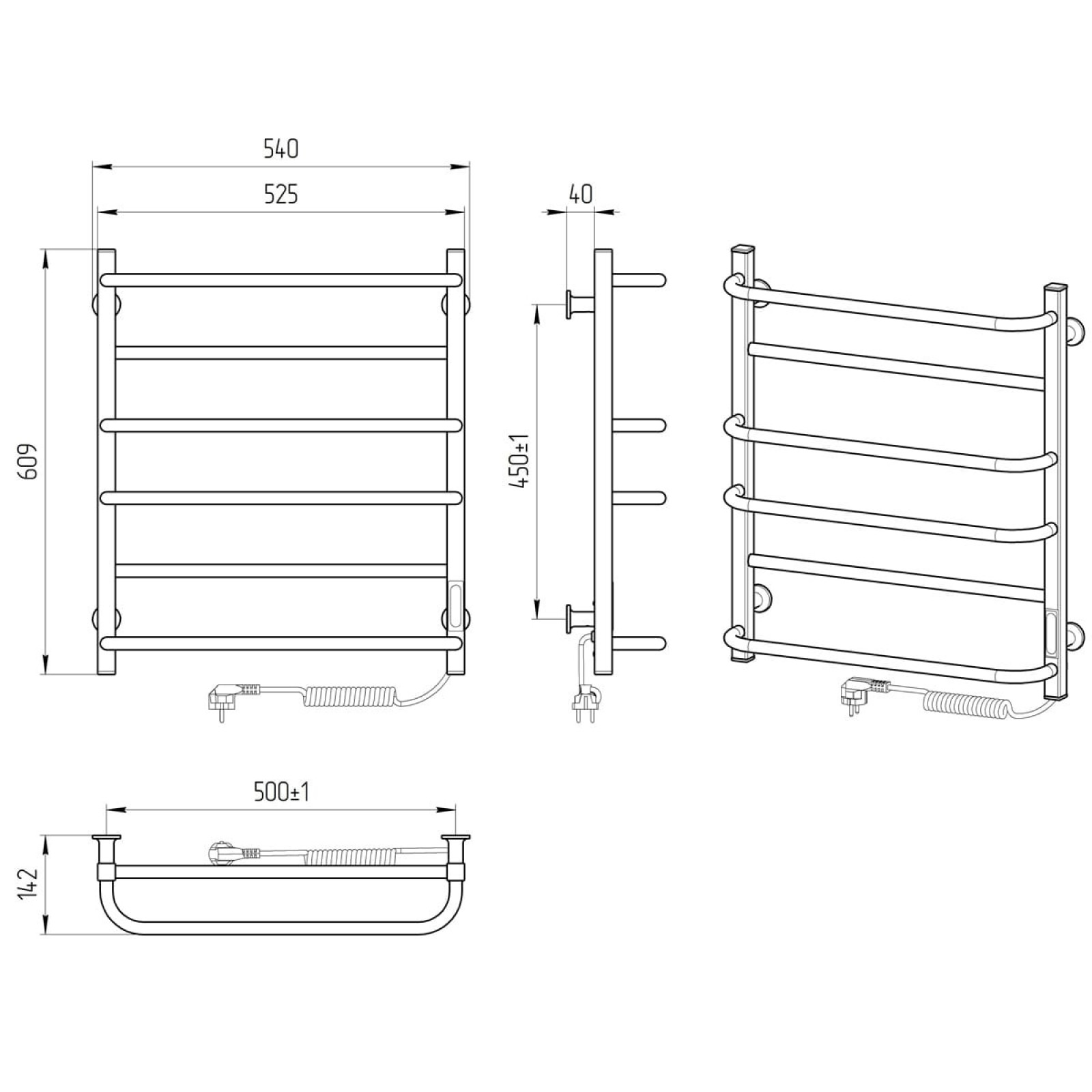 Calorifer baie portprosop electric Laris Zebra Komfort CK6 500х600 R este echipat cu un regulator de temperatură bazat pe microprocesor (control prin buton). Pentru a porni suportul încălzit pentru prosoape, trebuie să setați temperatura. Un senzor de temperatură monitorizează temperatura suprafeței acestuia, prevenind supraîncălzirea. Avantajele regulatorului includ memorarea modului de funcționare selectat (la oprire, funcționarea va fi reluată în modul programat de utilizator), un temporizator de oprire de 3 ore și lumini indicatoare colorate. Temperatura suprafeței suportului încălzit pentru prosoape este de 50±5°C. Suport de 25x25 mm, grosime de 1,5 mm; traversă de Ø18 mm, grosime de 1,5 mm.