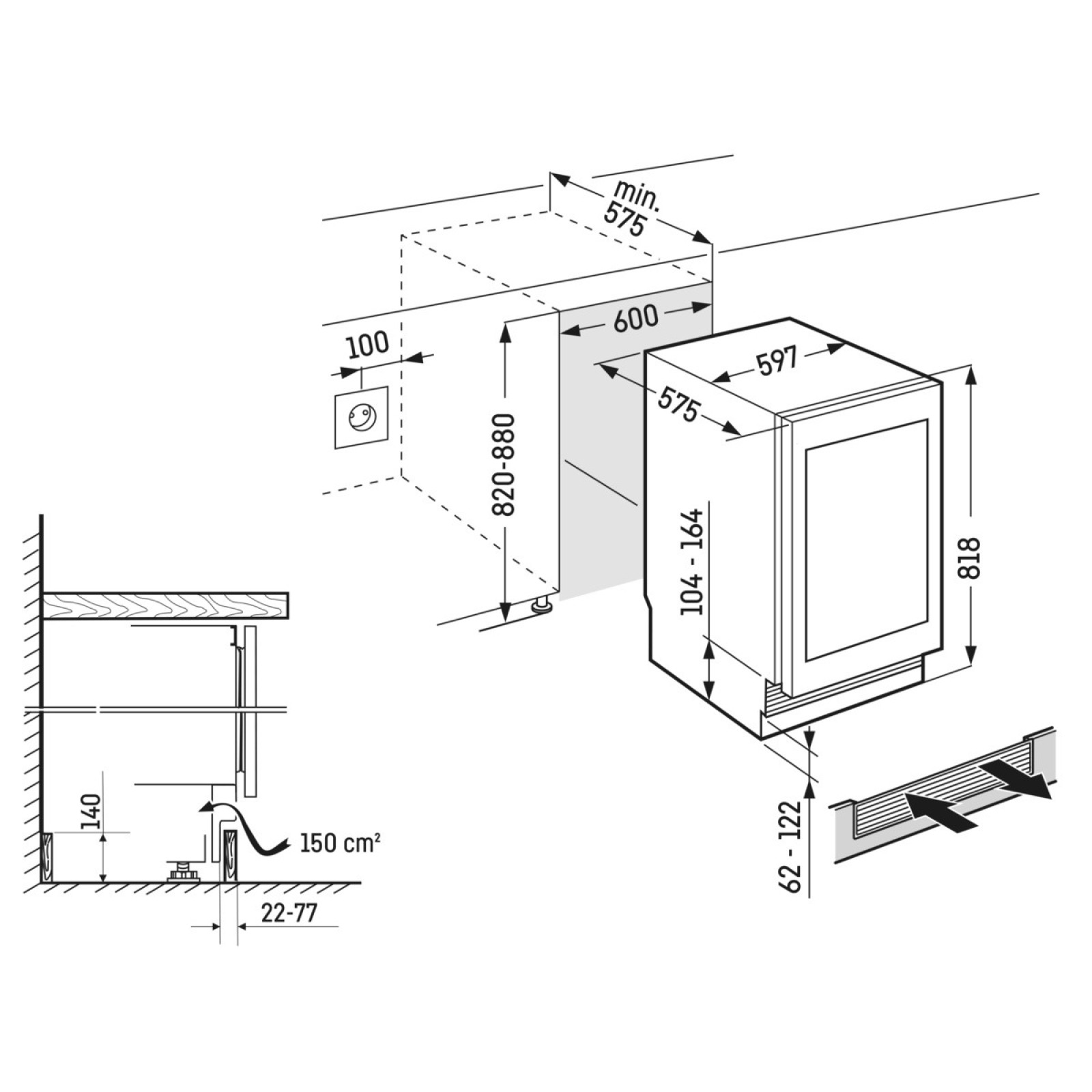 Picioarele reglabile vă permit să poziționați dulapul de vinuri optim și perfect, chiar și pe suprafețe neuniforme. Acest lucru asigură o etanșare strânsă a ușii, previne pătrunderea căldurii, previne condensul și menține o temperatură constantă, protejând calitatea vinului dumneavoastră.