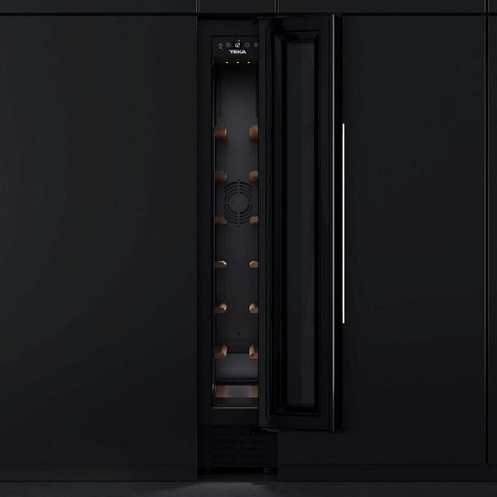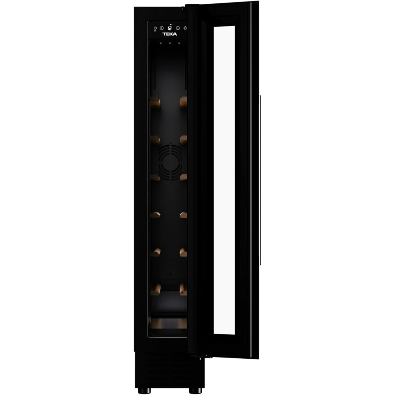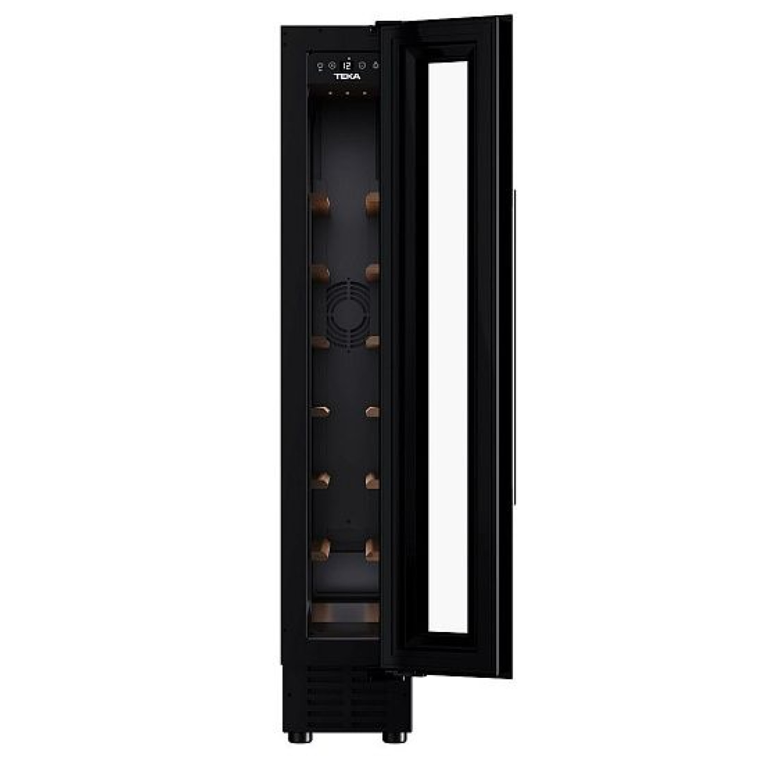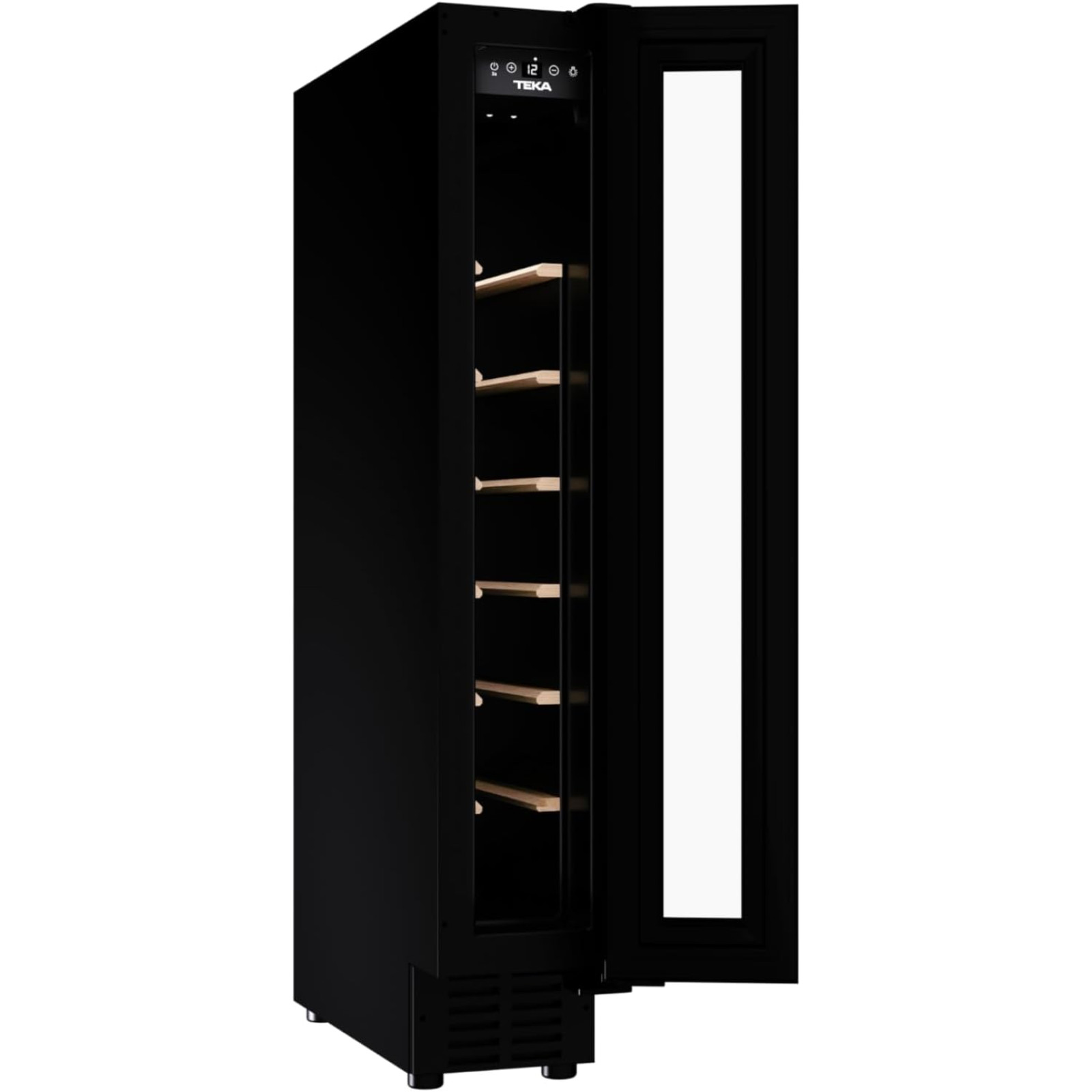 Vitrina de vinuri încorporată Teka RVU 10008 GBK are o capacitate de 8 de sticle și dispune de 6 rafturi din lemn, fiind ideală pentru depozitarea vinurilor preferate în condiții ideale.