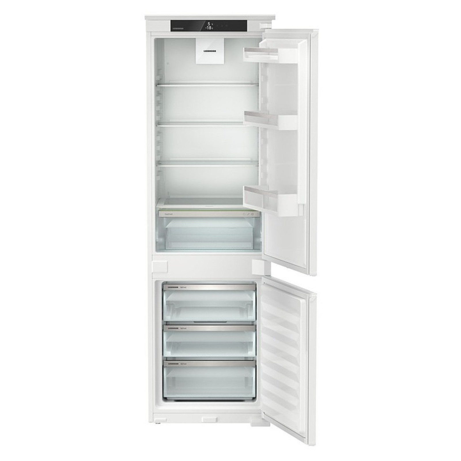 Frigiderul încorporat Liebherr ICNSe 5103 are o capacitate utilă de 251 de litri. Este echipat cu un sertar EasyFresh pentru depozitarea fructelor și legumelor, care izolează oxigenul, prelungind semnificativ durata lor de valabilitate, prevenind alterarea și păstrându-le valoarea nutritivă. Modul automat SuperCool menține temperatura corectă la adăugarea de alimente noi, împiedicând creșterea temperaturii din interiorul compartimentului frigider. Răcirea prin circulație PowerCooling distribuie uniform frigul în întregul compartiment congelator, asigurând o temperatură constantă atât pe rafturile superioare, cât și pe cele inferioare.