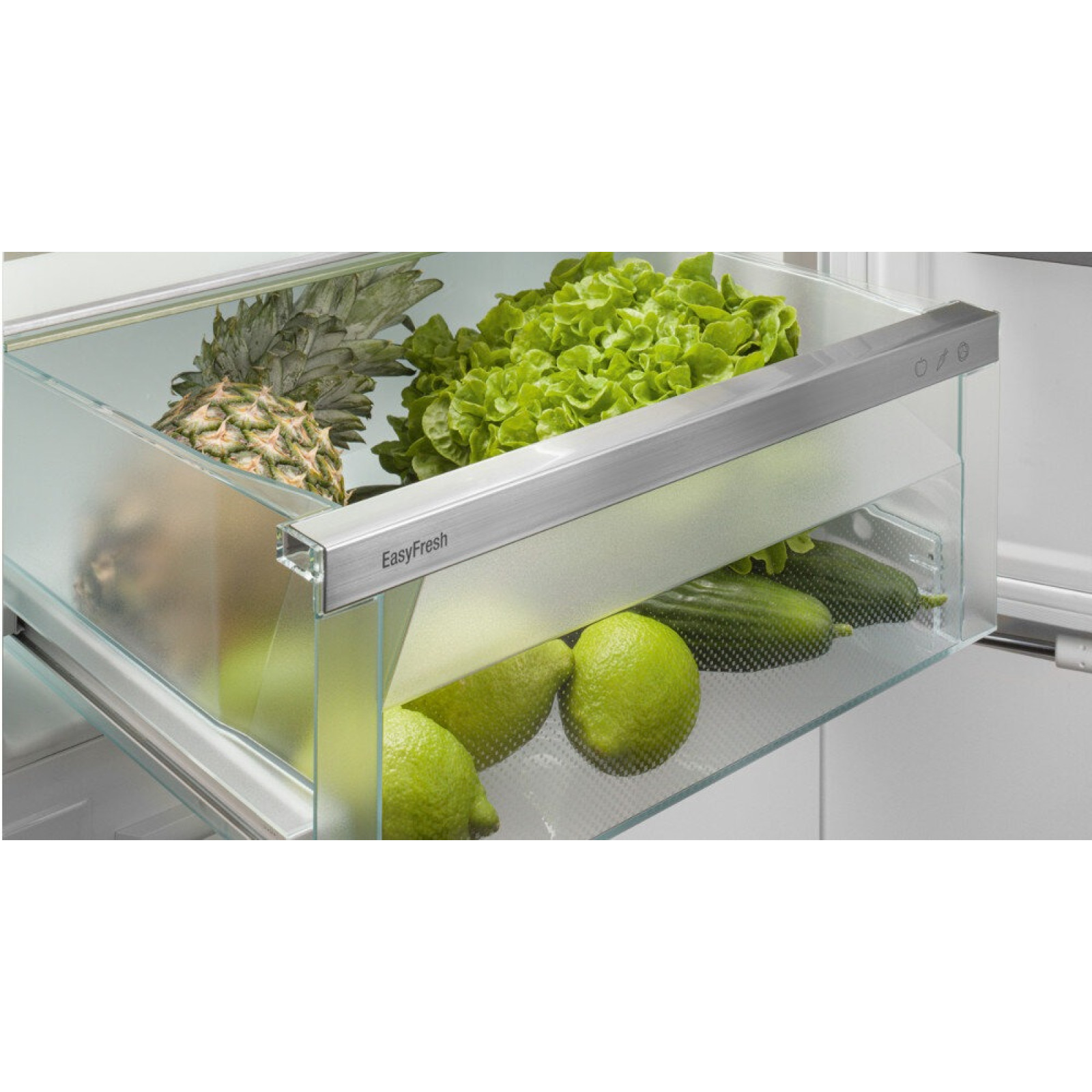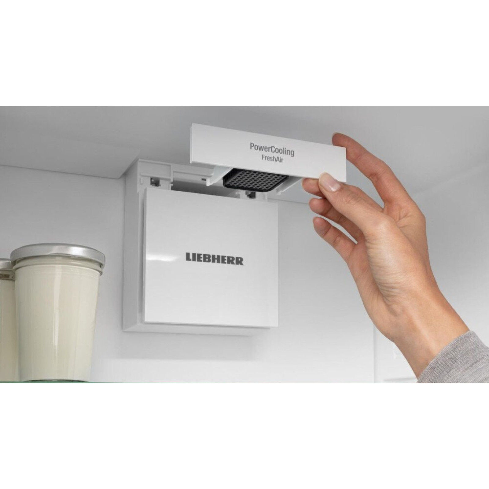 Frigiderul încorporat Liebherr IKGNS 51Vd03 are o capacitate utilă de 183 de litri. Este echipat cu un sertar EasyFresh pentru depozitarea fructelor și legumelor, care izolează oxigenul, prelungind semnificativ durata lor de valabilitate, prevenind alterarea și păstrându-le valoarea nutritivă. Modul automat SuperCool menține temperatura corectă la adăugarea de alimente noi, împiedicând creșterea temperaturii din interiorul compartimentului frigider. Răcirea prin circulație PowerCooling distribuie uniform frigul în întregul compartiment congelator, asigurând o temperatură constantă atât pe rafturile superioare, cât și pe cele inferioare.