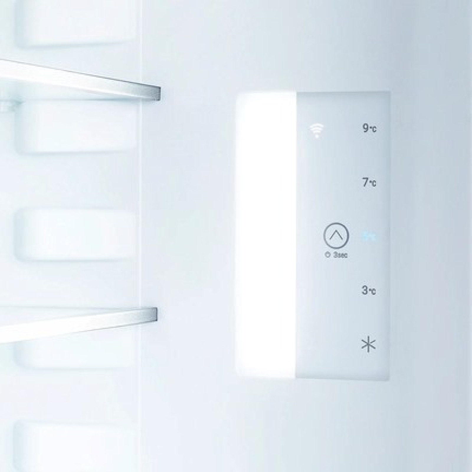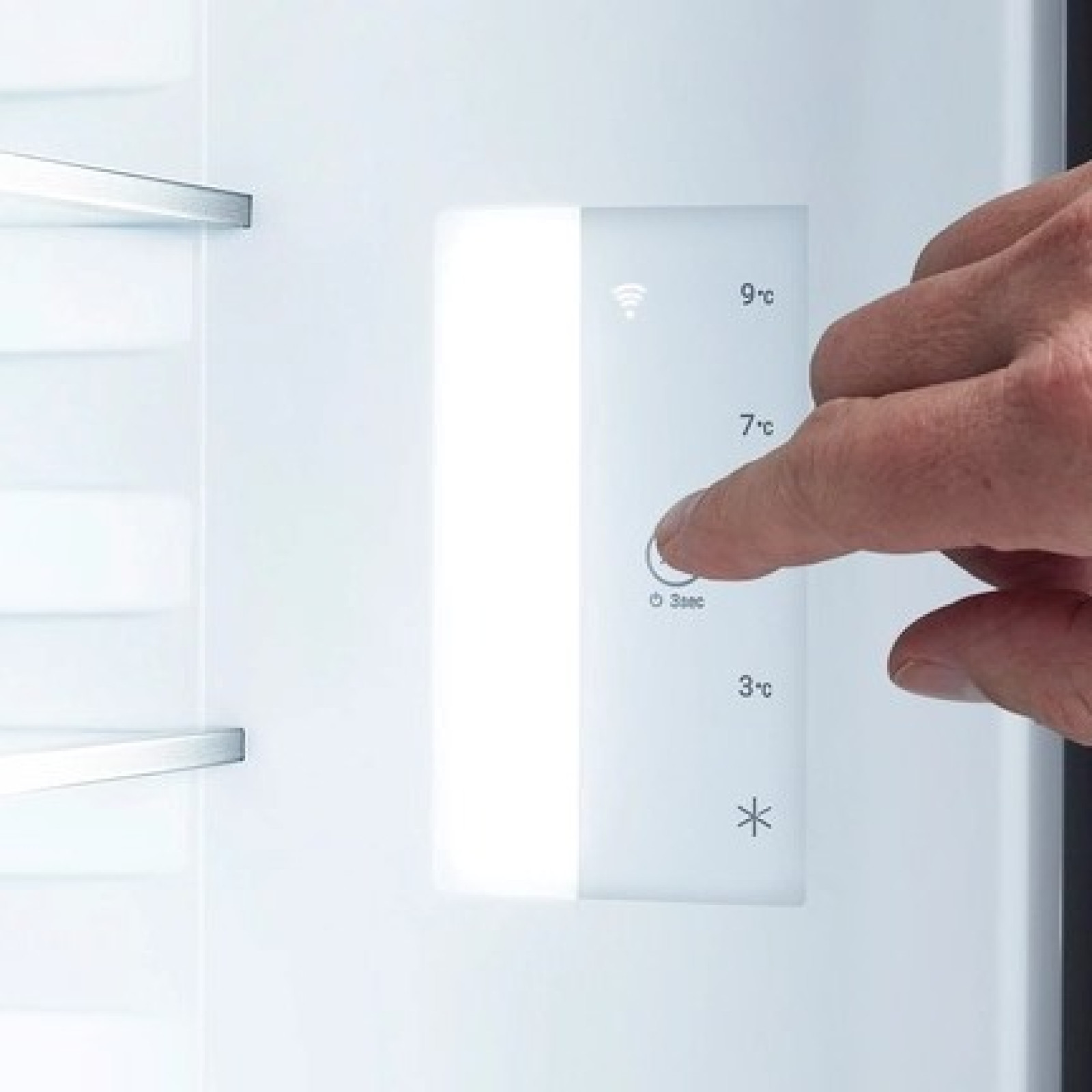 Cu TouchControl, puteți seta temperatura din Liebherr-ul dumneavoastră la 3, 5, 7 sau 9°C cu o atingere ușoară. Este simplu și eficient. Butonul subțire, integrat în interior, lasă mult spațiu pentru depozitarea alimentelor proaspete.