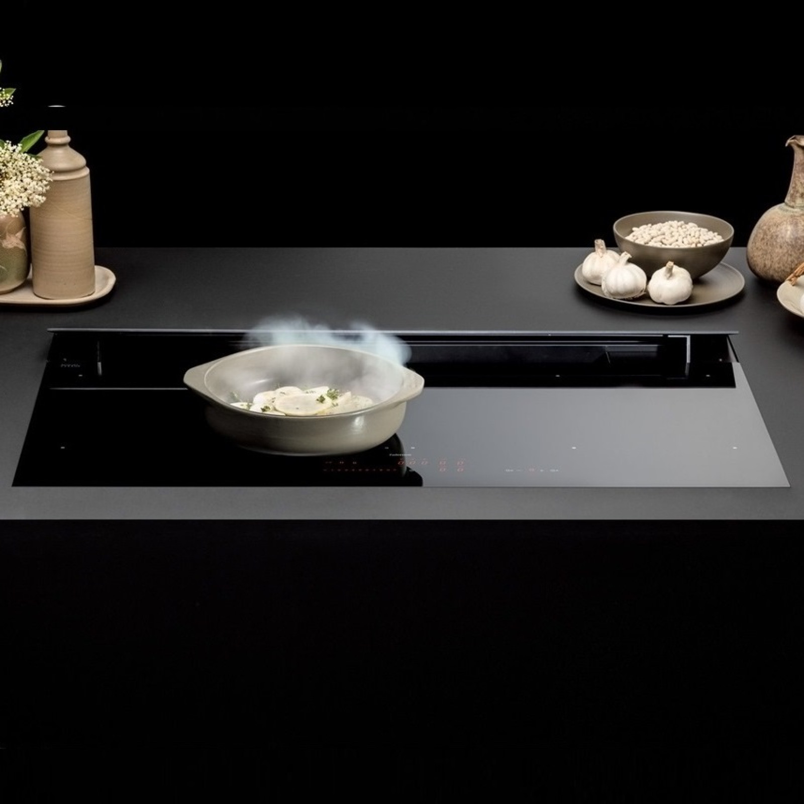 Plita cu inductie cu hota incorporata Falmec Brera 90 cu control tactil și afișaj LED roșu este convenabilă pentru selectarea unuia dintre cele 9 niveluri de gătit și activarea funcției Booster, care vă permite să creșteți pentru scurt timp puterea arzătorului. Suprafata este realizata din sticla ceramica. Motor fara perii 800 (1600) m3/h, îl face eficient și silențios. Mod automat (reglarea puterii hotei in functie de pregatire).