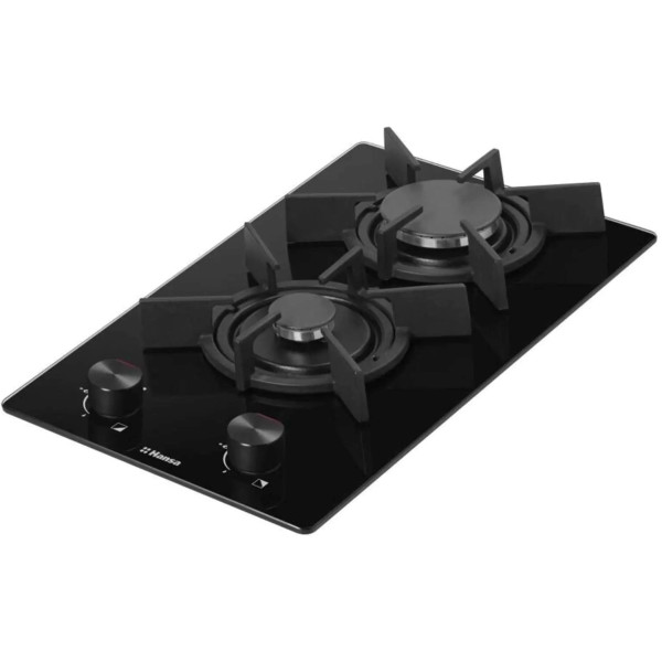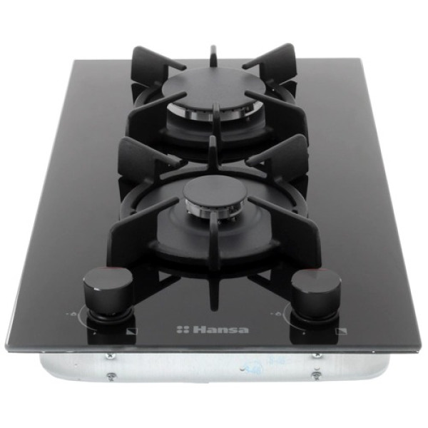 Plita pe gaz Hansa BHKS330500 se potrivește perfect într-un spațiu de lucru compact din bucătărie. Acest model cu două arzătoare are o suprafață din sticlă securizată și grătare din fontă și este echipat cu duze pentru conectarea buteliilor de gaz. Comenzile mecanice convenabile au aprindere automată încorporată. Un sistem de control al gazului asigură o utilizare sigură: senzorii detectează absența flăcării în arzătoare și opresc alimentarea cu gaz.