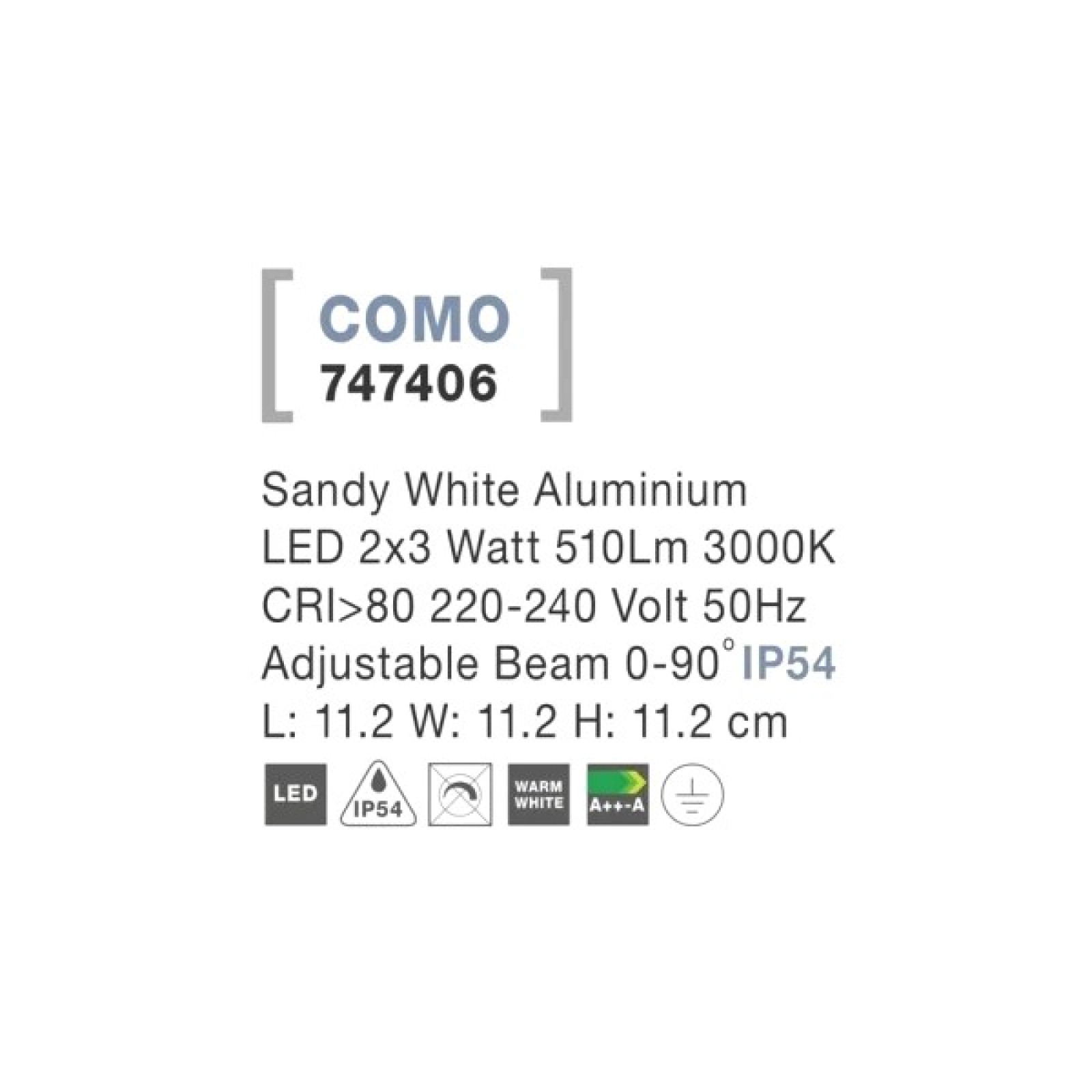 Aplica Nova Luce Como 74740 este un corp de iluminat modern și elegant, echipat cu două module LED de 3W. Fluxul luminos este de 510 lm. Temperatura luminii este de 3000K.