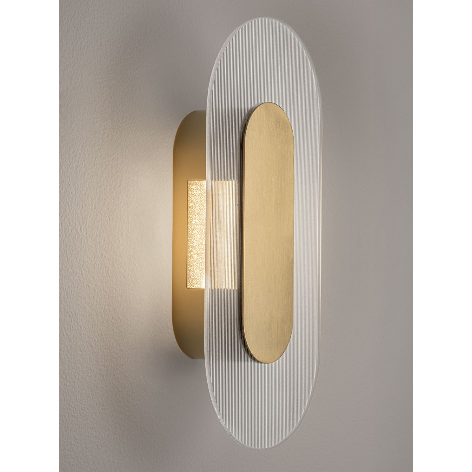 Aplica moderna pentru interior Nova Luce Vetrio 9236417 cu iluminare indirecta, cu structură din metal finisat alama si dispersor din sticla striata transparenta. Echipată cu LED-uri SMD 6W, cu temperatura de culoare alb cald 3000K. Flux luminos maxim 203 lumeni.
