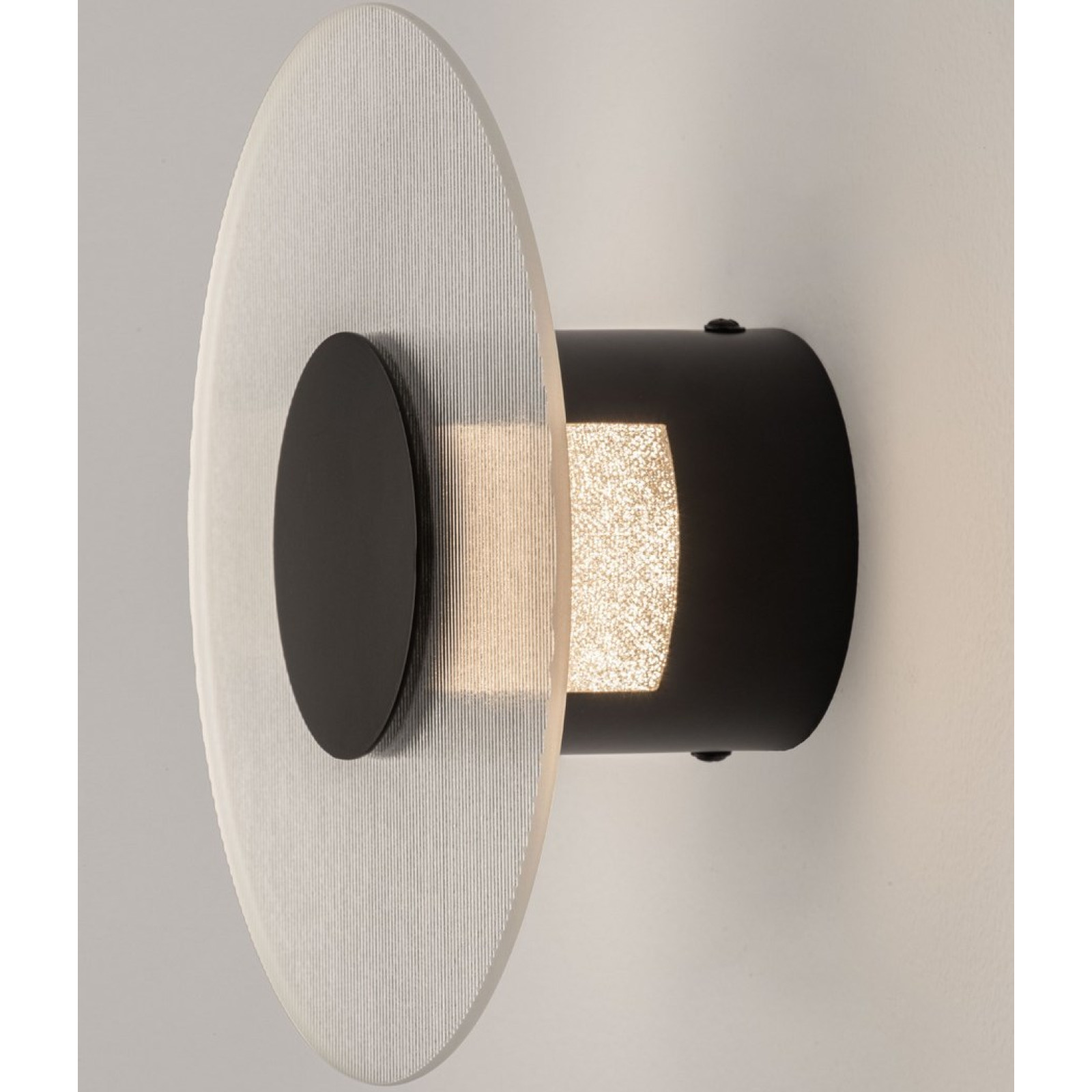 Aplica moderna pentru interior Nova Luce Vetrio 9236424 cu iluminare indirecta, cu structură din metal vopsit negru mat si dispersor din sticla striata transparenta. Echipată cu LED-uri SMD 6W, cu temperatura de culoare alb cald 3000K. Flux luminos maxim 203 lumeni.
