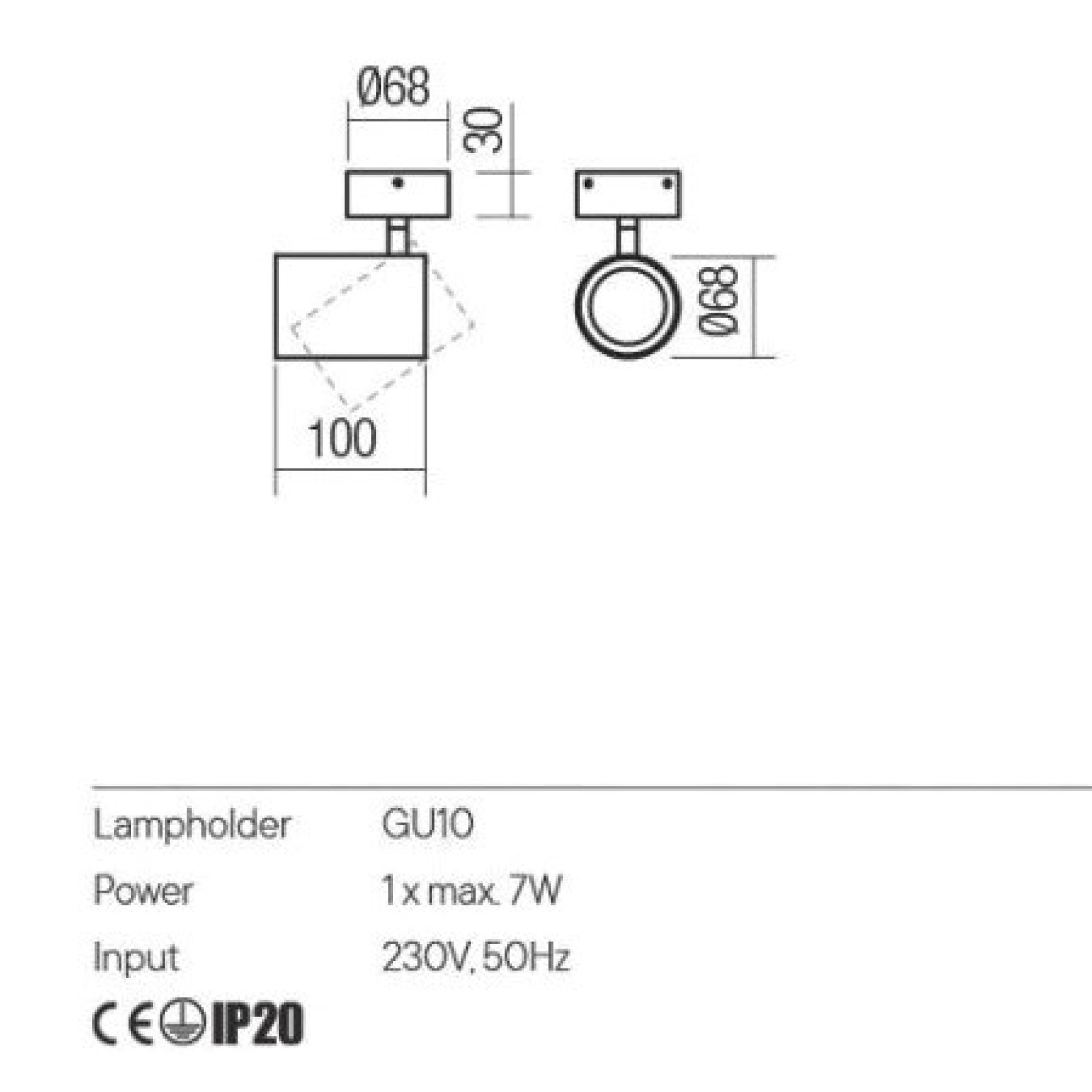 Mini proiector orientabil pentru interior Redo Group Corinth 01-3427 cu montaj aplicat pe tavan sau perete, pentru un bec cu LED-uri PAR16, GU10. Structură din aluminiu extrudat, vopsită în câmp electrostatic negru mat.