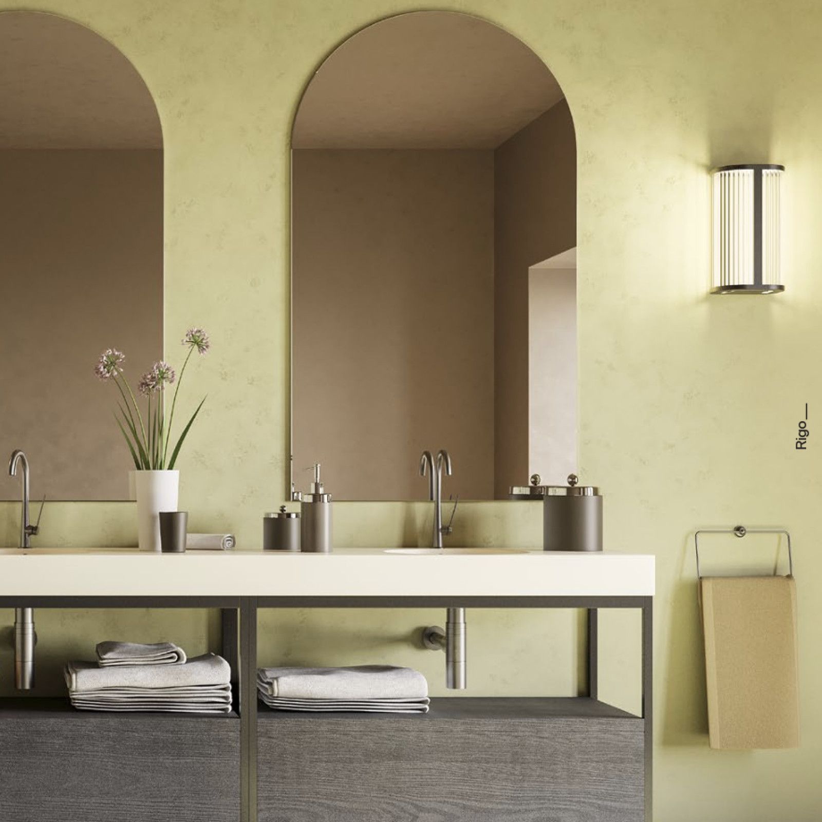 Aplica pentru interior cu protecție la umiditate Redo Group Rigo 01-4313 cu structură din aluminiu finisat alama periata si dispersor realizat din baghete din sticlă transparentă. Echipata cu LED-uri SMD CCT 12W, cu posibilitate de selectare a temperaturii de culoare a luminii alb cald 3000K sau alb neutru 4000K. Flux luminos maxim 1050 lumeni.