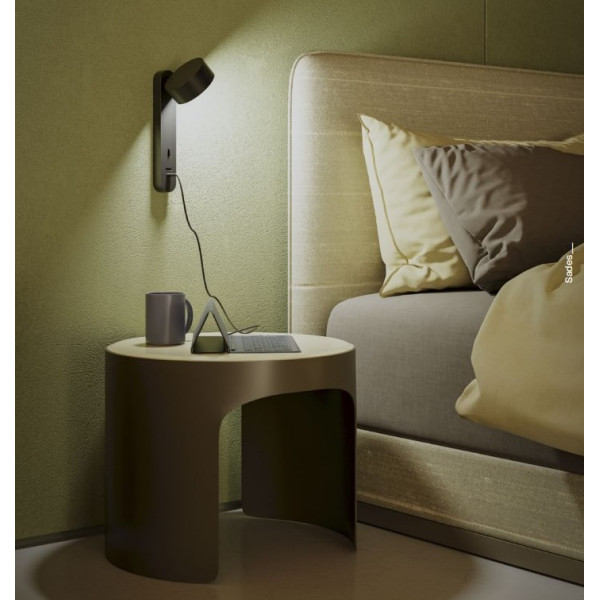 Aplică orientabilă pentru interior Sades 01-4642 echipată cu LED-uri SMD, port USB tip A + C, 2.1A și întrerupator ON/OFF. Structură din metal și aluminiu finisaj bronz antic, dispersor din acril alb satinat.