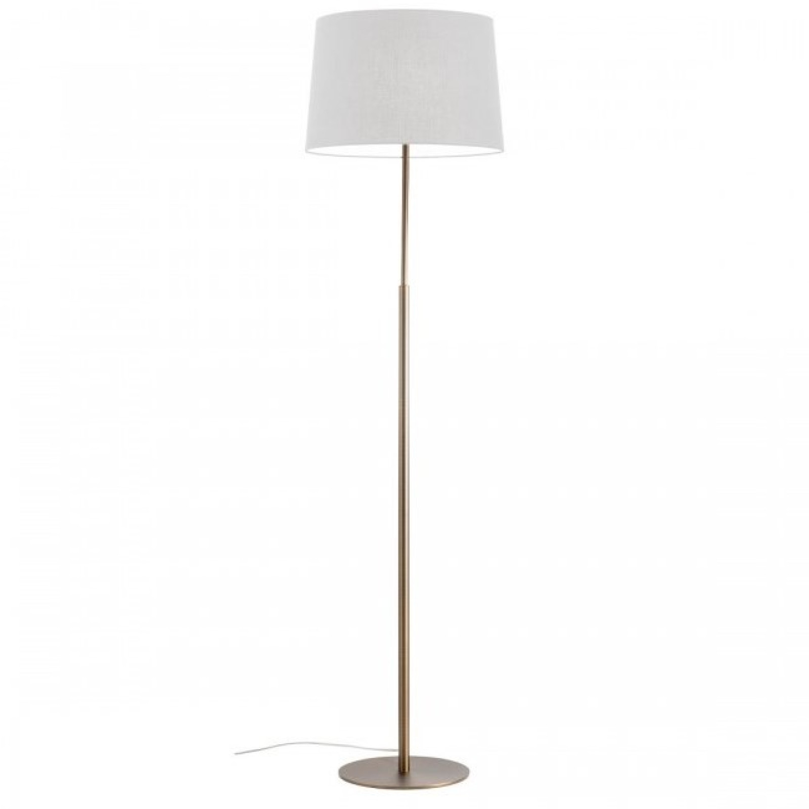 Lampadar clasic pentru interior Redo Group Nemia 01-4654 cu structura din metal finisat bronz antic și abajururi cu structură din metal vopsit alb cu material textil de culoare bej. Sursa de iluminat nu este inclusa.