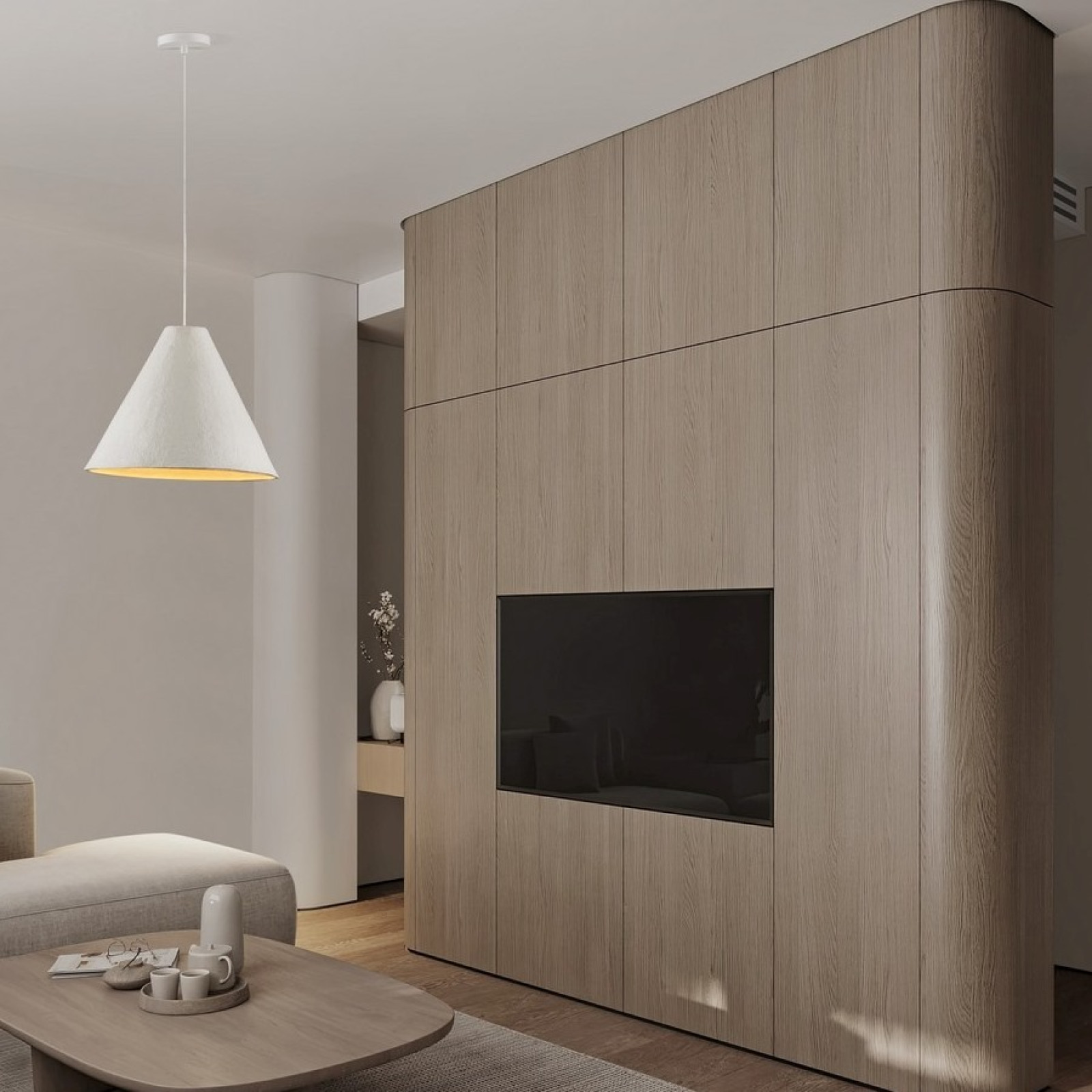 Suspensie pentru interior Nova Luce Joelle 9001136, cu structura din metal vopsit alb mat si abajur din ”papier mache” alb.
