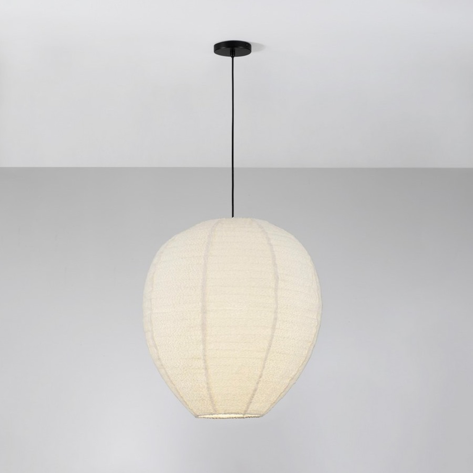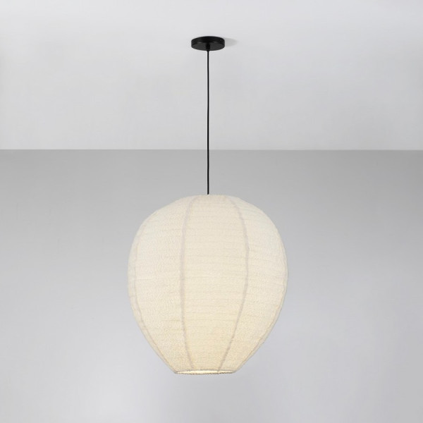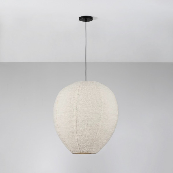 Suspensie eleganta pentru interior Nova Luce Nubble 9001142, cu structura din metal vopsit negru si abajur din material textil tip boucle alb. Ideală pentru dining sau dormitor.