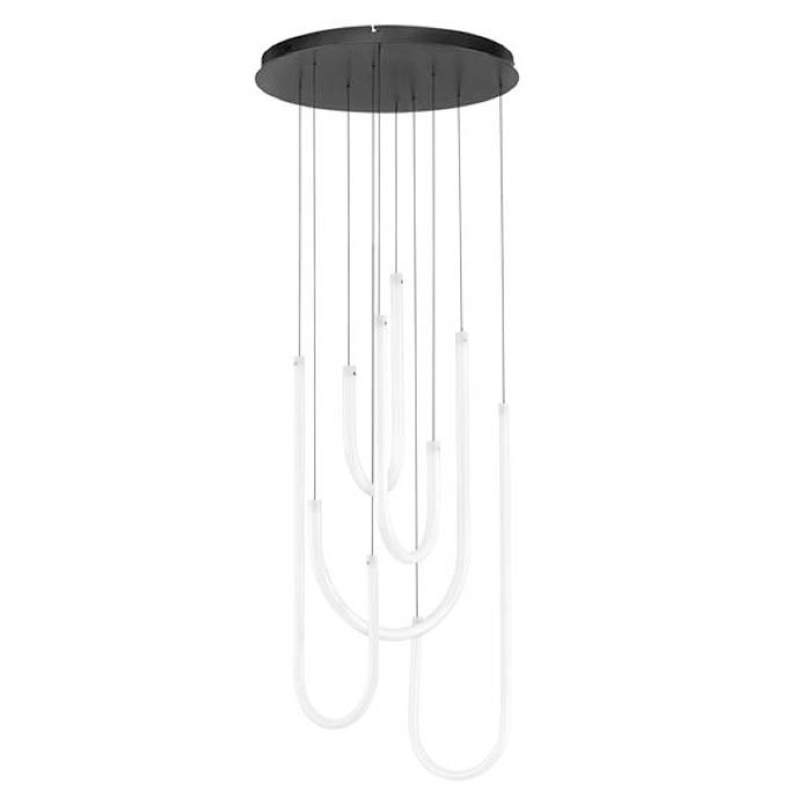 Lustra moderna pentru interior Nova Luce Topaz 9100150 cu structură din metal și aluminiu vopsita negru mat si dispersoare din acril alb opal. Echipată cu LED-uri SMD 55W cu temperatura de culoare alb cald 3000K. Total flux luminos 3850 lumeni.