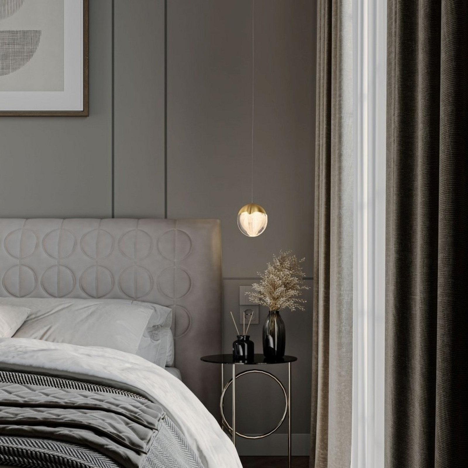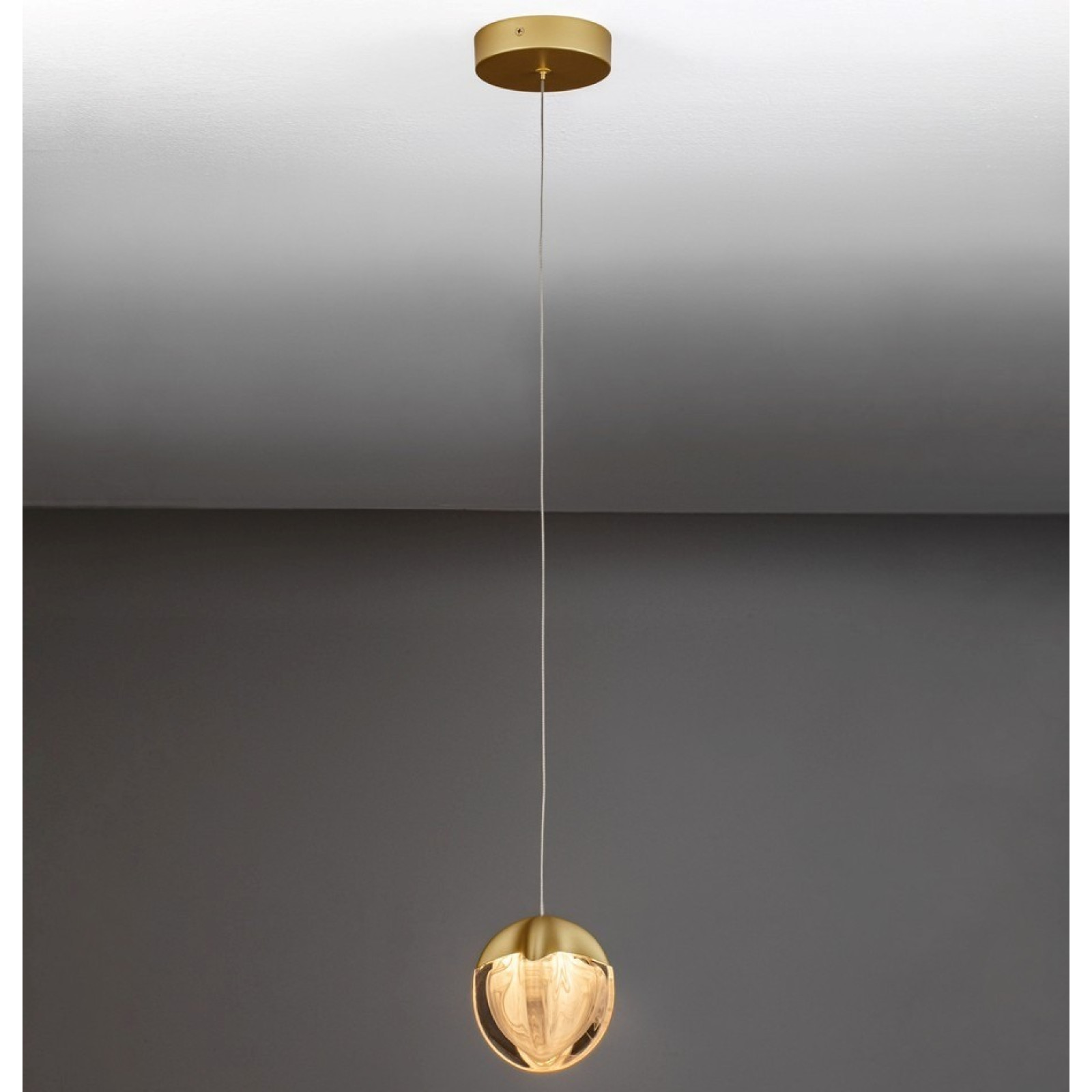 Suspensie moderna pentru interior Nova Luce Alicia 9124122, cu structură din aluminiu și metal finisata auriu mat si dispersor din sticla masiva transparenta prelucrata manual. Echipată cu LED-uri SMD 5W, cu temperatura de culoare alb cald 3000K. Flux luminos maxim 315 lumeni.