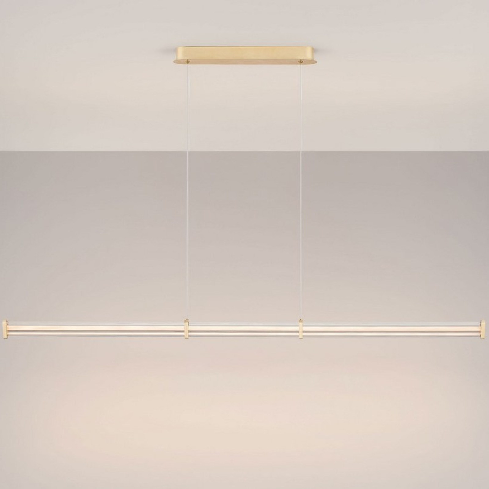 Suspensie moderna pentru interior Nova Luce Pheme 9214130, cu structură din metal și aluminiu finisată auriu satinat si dispersor din acril transparent. Echipata cu LED-uri SMD 21W, cu temperatura de culoare alb cald 3000K. Flux luminos maxim 1470 lumeni.