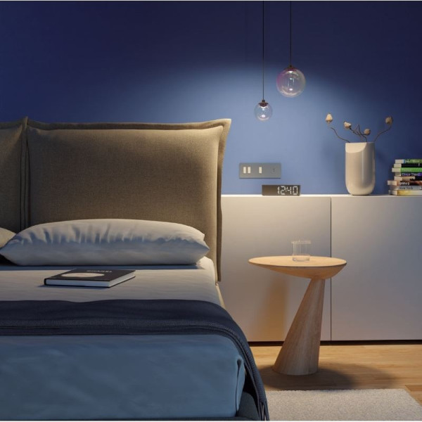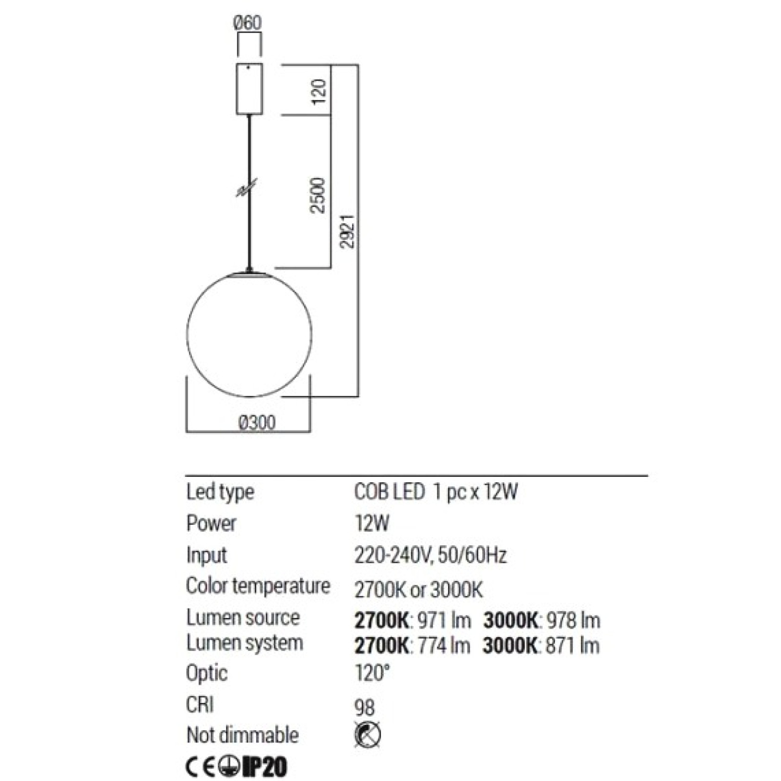 Echipată cu un LED COB 12W cu temperatura de culoare alb cald 3000K / 2700K.