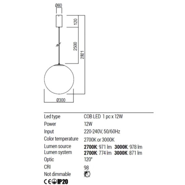 Total flux luminos 3000K, 871 lm, 2700K, 774 lm.