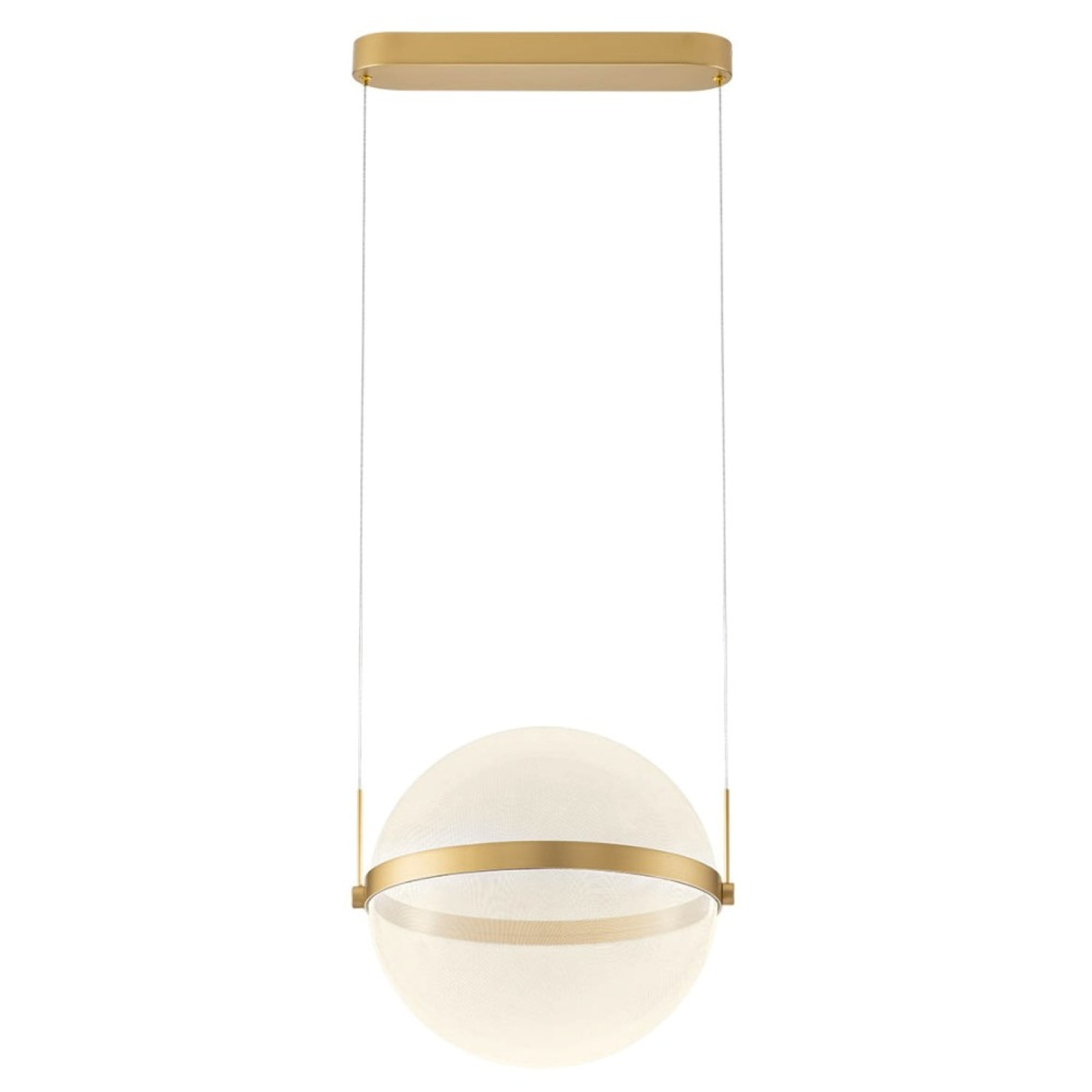 Suspensie moderna pentru interior Redo Group Atlas 01-4372, cu structură din aluminiu și metal finisată alamă mată aurie si dispersor din acril transparent cu decor serigrafiat alb. Echipata cu LED-uri SMD 34W cu temperatura de culoare alb cald 2700-3000K. Total flux luminos 1998 - 2407 lumeni. Dimabila TRIAC