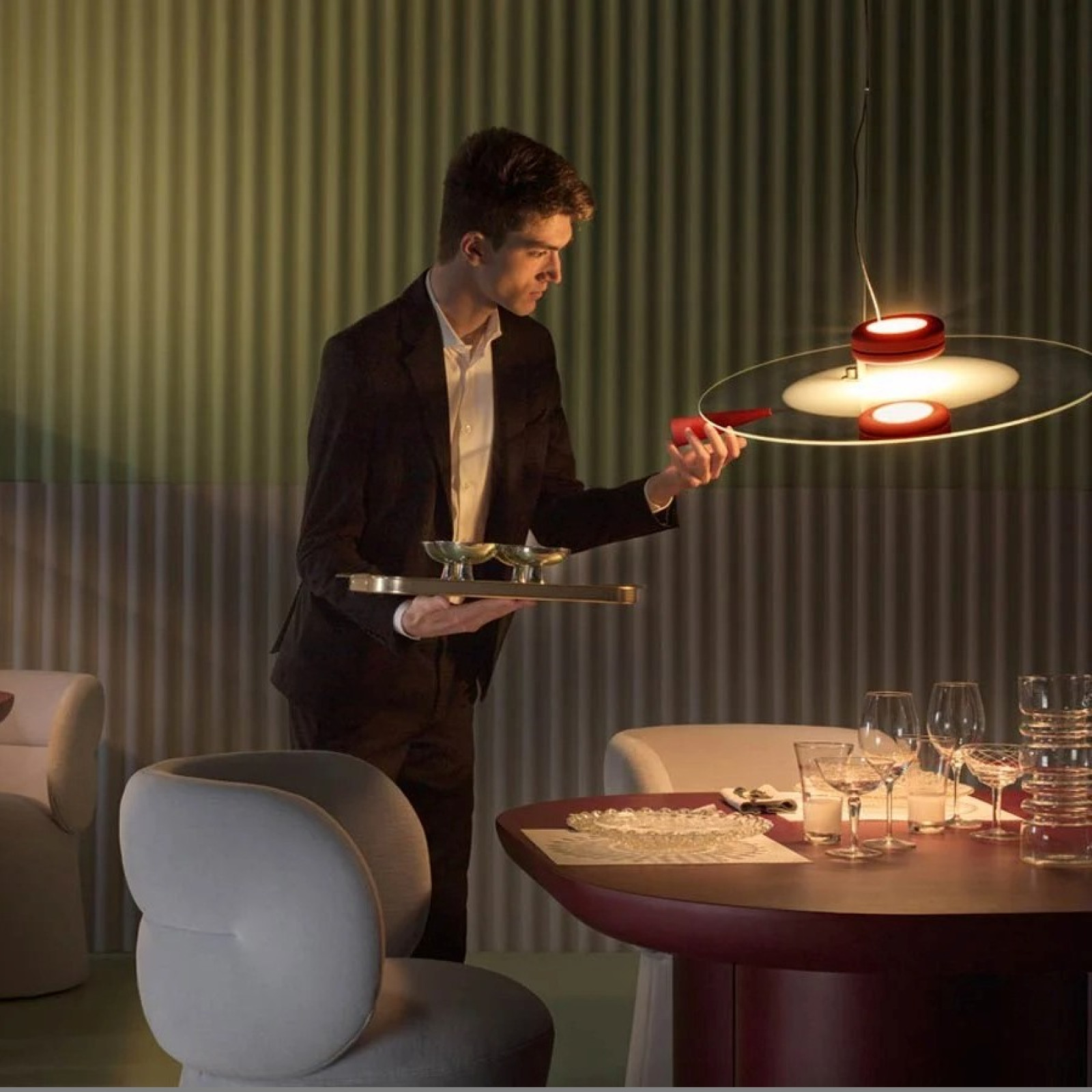 Lampa suspendată Stilnovo Bascula CZ001CRRMDD este potrivită pentru orice interior, de la dormitoare la camere de zi sau bucătării, precum și birouri și magazine. Echipată cu o sursă LED Top de 26W, disponibilă în 2700K sau 3000K (CRI 90)), este potrivită atât pentru interioare moderne, cât și clasice, de la camere de zi la bucătării și dormitoare. Un disc subțire plutește pe un cablu întins, în timp ce o contragreutate metalică conică servește drept bază a compoziției și direcționează lumina. Combinația dintre un difuzor de sticlă și un radiator de aluminiu îmbunătățește calitatea luminii, creând un efect precis, dar delicat în orice interior. Geometria sa simplă și materialele atent gândite permit lămpii să se integreze armonios în spațiu, modelând atmosfera prin iluminare și formă.