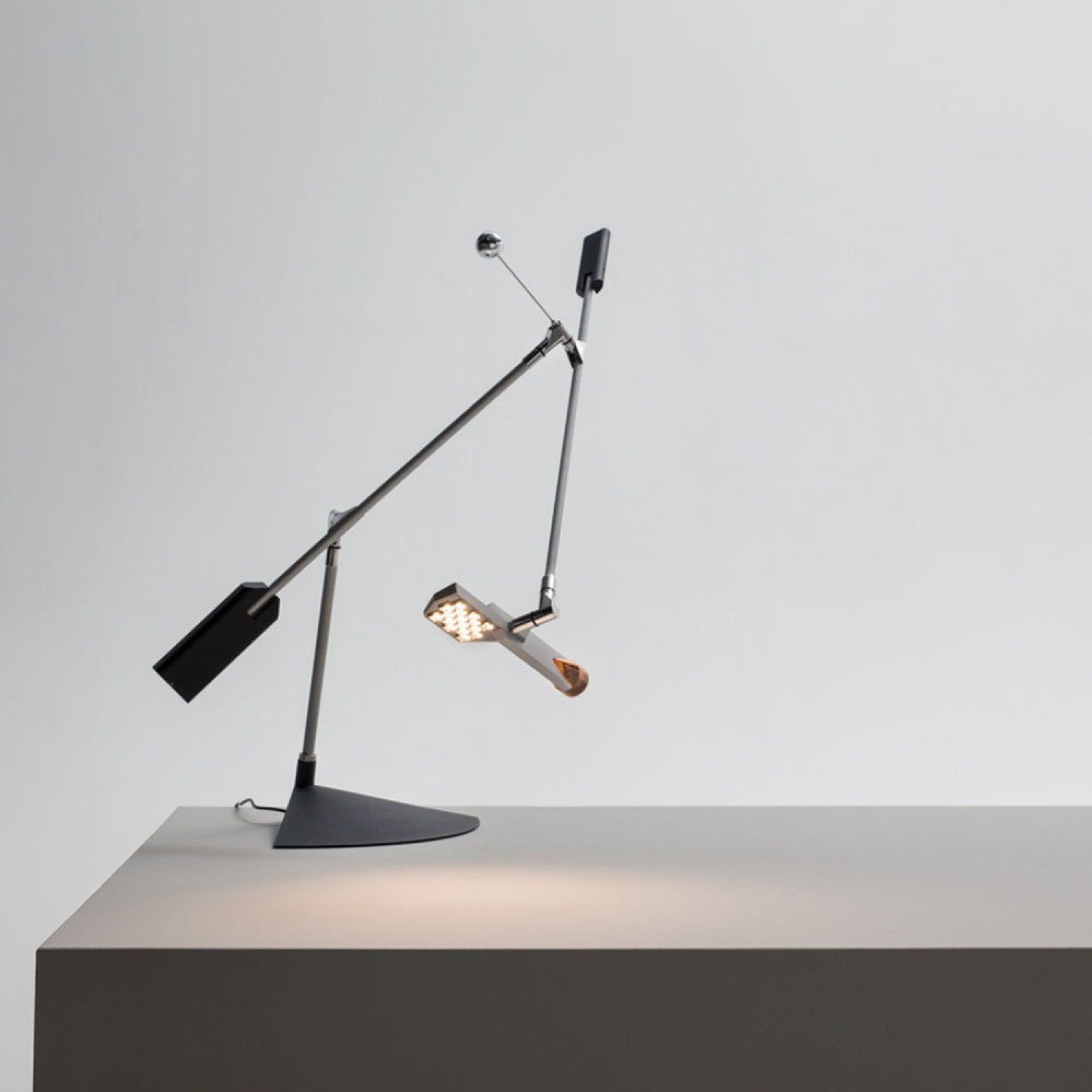 Lampa de masă Stilnovo Halley 9586 este potrivită pentru casa sau biroul dumneavoastră. Sursa de lumină LED Top integrată de 9W, disponibilă în versiuni de 3000K (1118 lumeni) sau 2700K (1040 lumeni) cu un indice de redare a culorilor ridicat (CRI 90), oferă o iluminare difuză și confortabilă, ideală pentru viața de zi cu zi. Datorită designului său orbital cu șase balamale independente și rotație la 360°, poate fi poziționat în orice direcție cu o singură mână, fără a mișca baza.