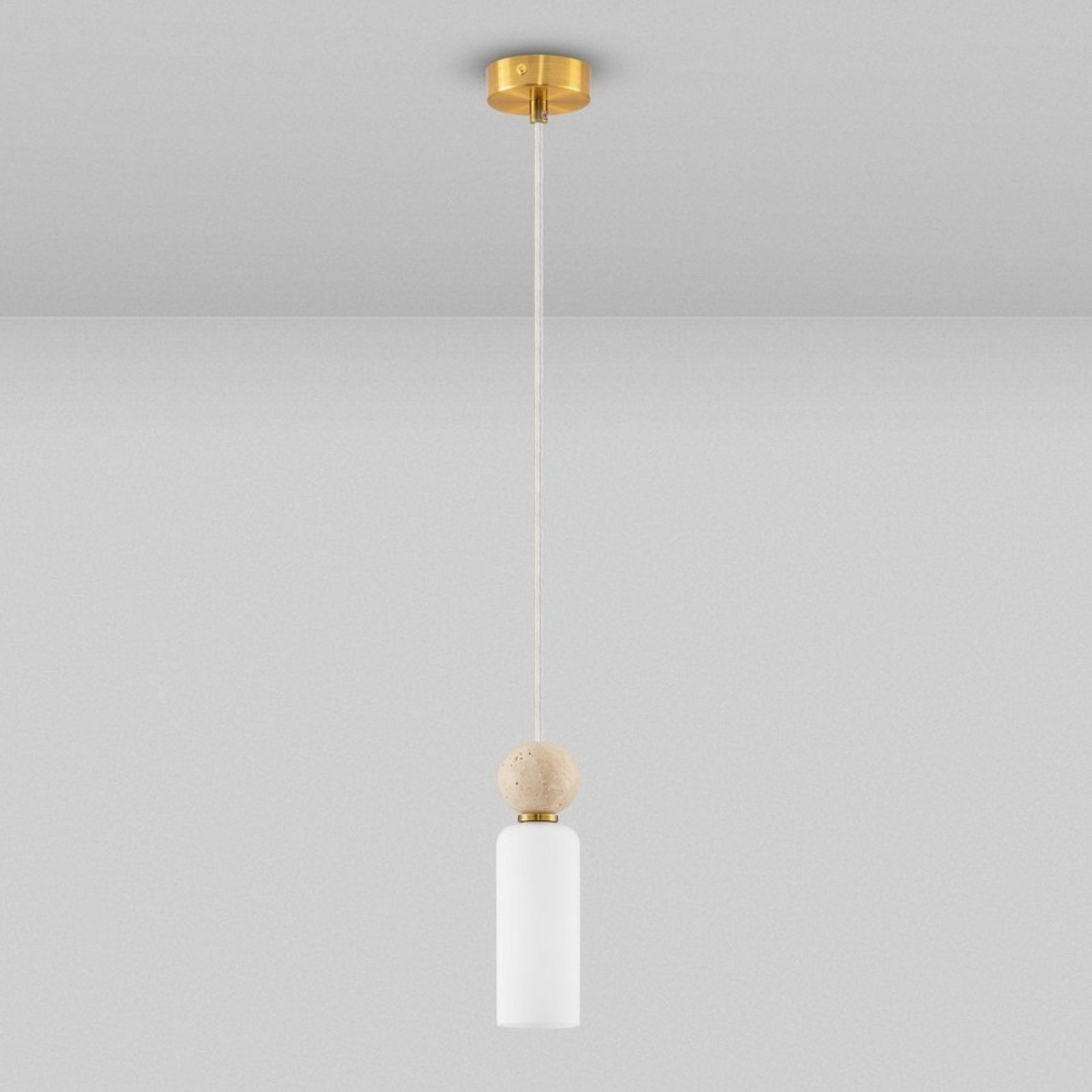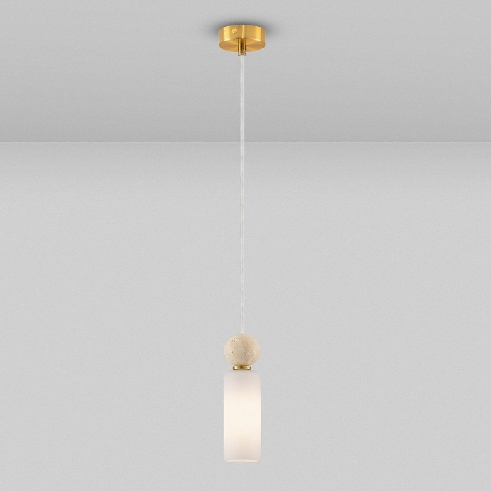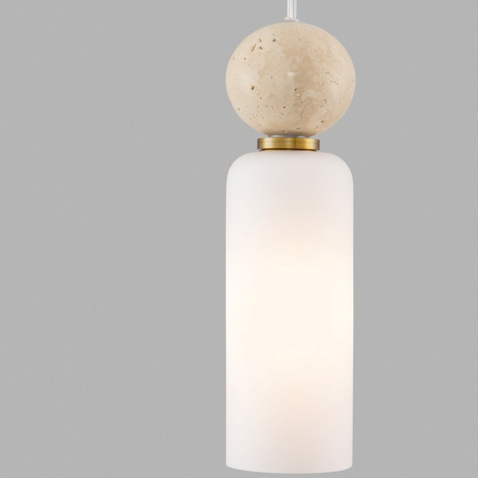 Потолочный светильник Nova Luce Filomena 9019784, структура из металла с отделкой из металла, абажур из камня или опала, декоративная сфера из натурального травертина.