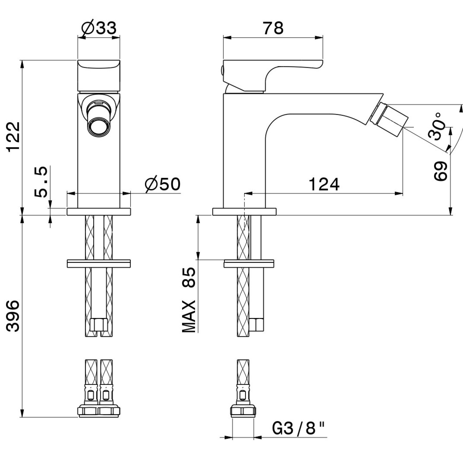 Baterie pentru bideu Newform Linfa II are o înălțime de 122 mm și este concepută pentru o singură gaură. Gura de scurgere de 124 mm asigură direcționarea convenabilă și precisă a jetului de apă, iar absența unei supape inferioare simplifică proiectarea și întreținerea dispozitivului. Cartușul ceramic oferă un control lin și precis al temperaturii și debitului de apă, sporind confortul zilnic și reducând riscul schimbărilor accidentale de temperatură.