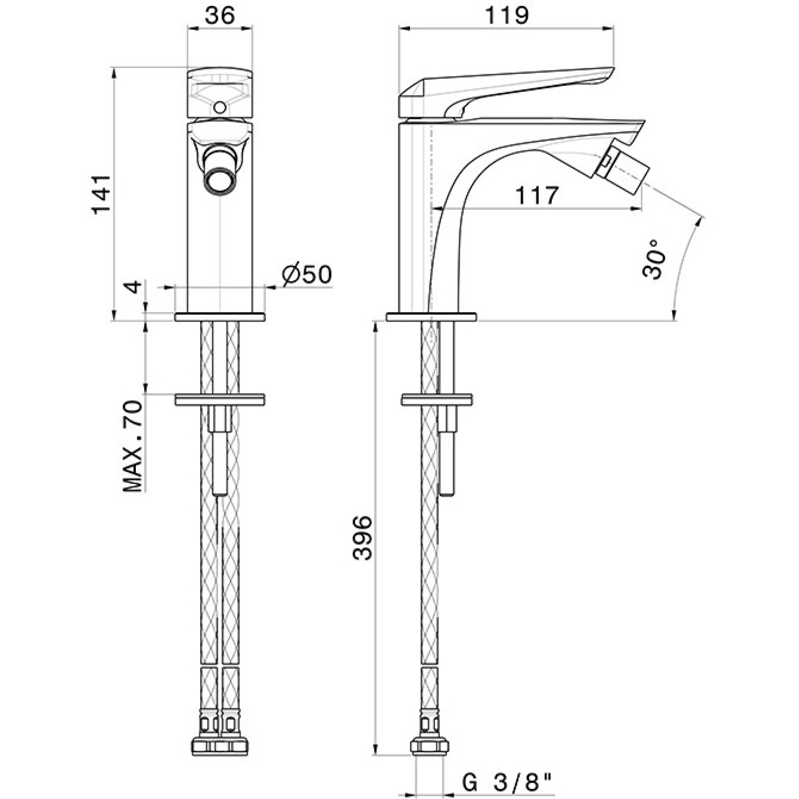 Baterie pentru bideu Newform Delta-0 are o înălțime de 141 mm și este concepută pentru o singură gaură. Gura de scurgere de 117 mm asigură direcționarea convenabilă și precisă a jetului de apă, iar absența unei supape inferioare simplifică proiectarea și întreținerea dispozitivului. Cartușul ceramic oferă un control lin și precis al temperaturii și debitului de apă, sporind confortul zilnic și reducând riscul schimbărilor accidentale de temperatură.