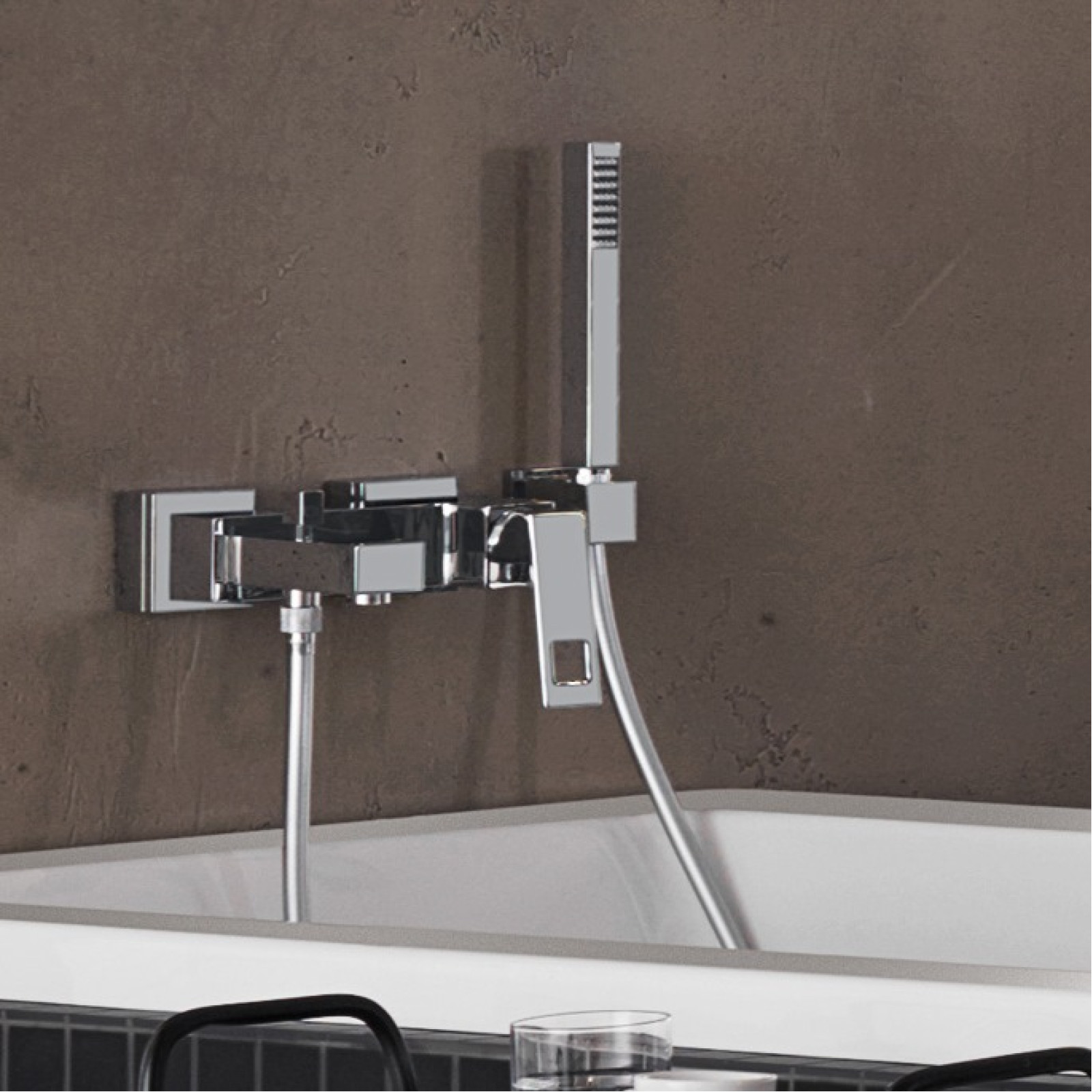 Suport de duș montat pe perete.