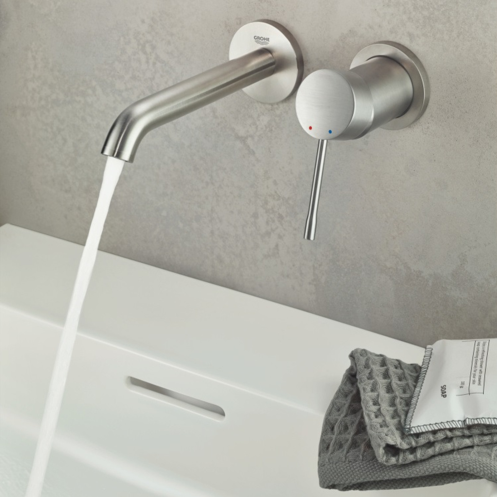 Baterie lavoar Grohe Essence cu 2 orificii și cartuș ceramic de 35 mm, oferă un control lin și precis al temperaturii și debitului de apă, sporind confortul zilnic și reducând riscul schimbărilor neintenționate de temperatură. Aeratorul reglabil AquaGuide este de înaltă tehnologie pentru baterie, care permite reglarea precisă a unghiului jetului de apă (între 20-40°) pentru a preveni stropirea. Tehnologia de economisire a apei limitează debitul la 5,7 l/min fără a compromite performanța. Presiunea minimă este de 1,0 bar. Bateria este instalată în timpul renovării.