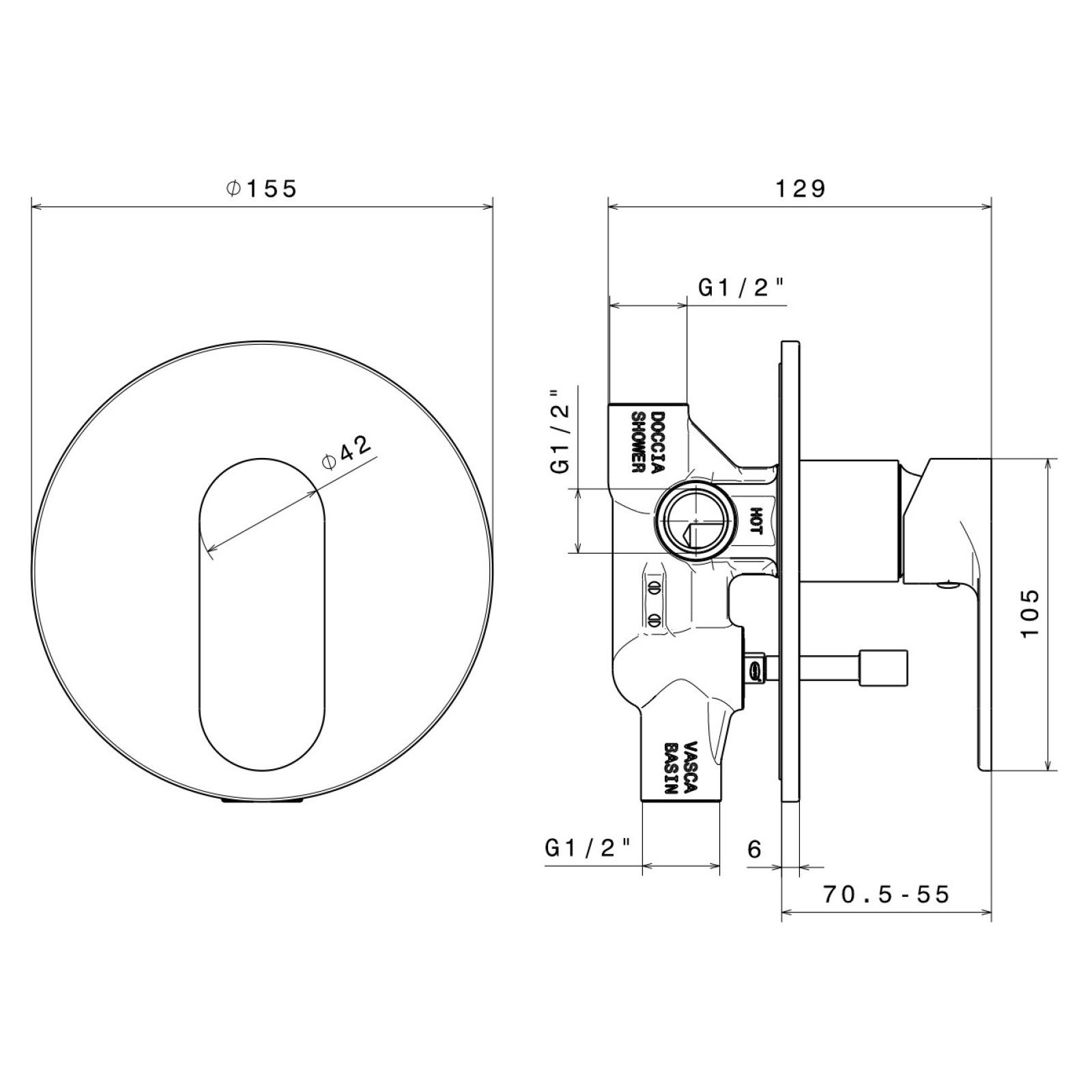 Baterie pentru dus Newform Extro are un deviator cu două poziții pentru apă caldă și rece în baie. Controlul cu o singură manetă permite reglarea rapidă și lină a debitului de apă cu o singură mână.