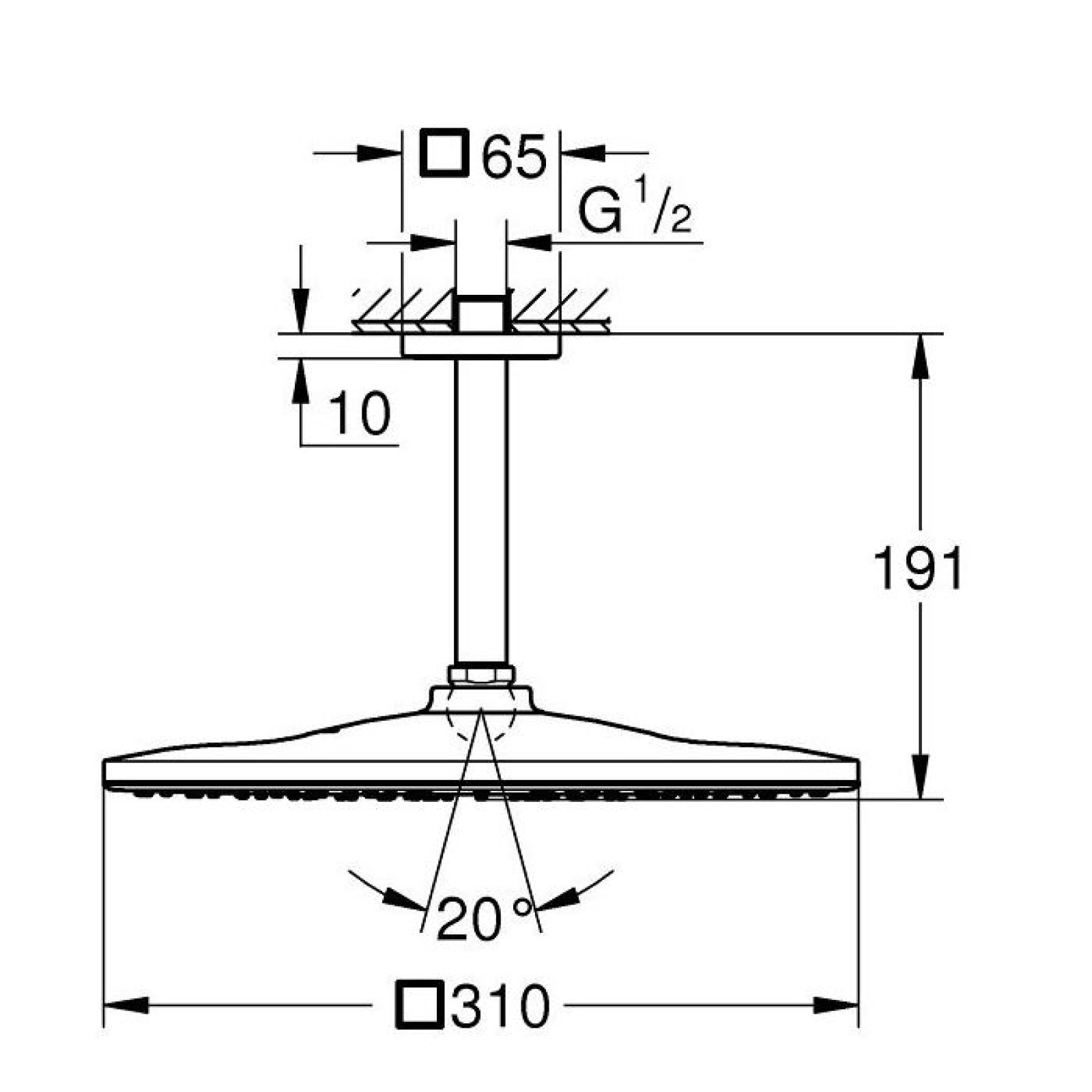 Palarie de dus cu brat Grohe Rainshower D310 Mono Cube 26566AL0