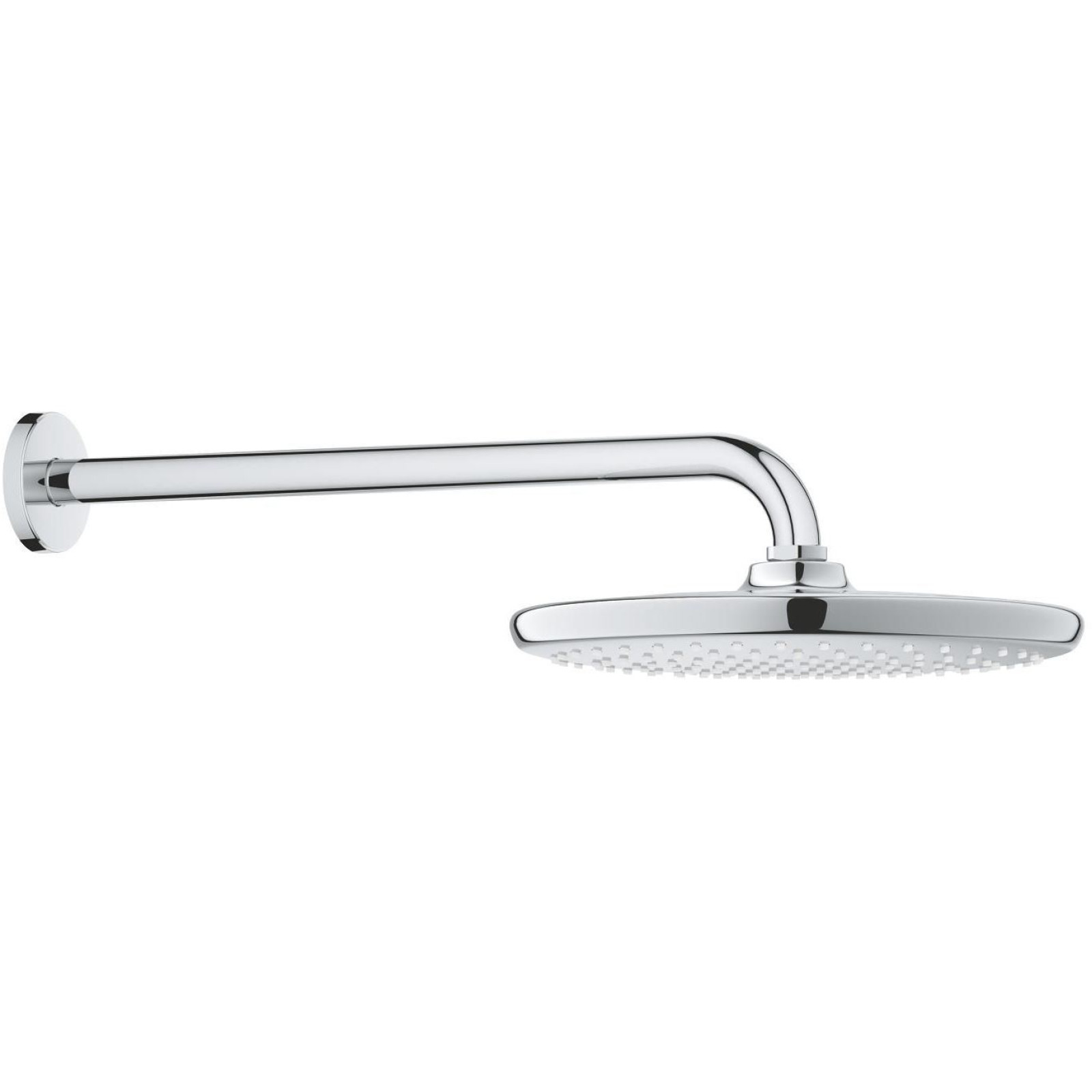 Cap de duș rotund tropical Grohe D250 Tempesta 26663000 cu suport de perete de 380 mm. Dispune de un canal intern de răcire pentru o durată lungă de viață. Tehnologia SpeedClean îndepărtează cu ușurință calcarul de pe suprafața dușului, tehnologia DreamSpray asigură un debit egal de apă de la fiecare duză de duș, iar tehnologia EcoJoy limitează debitul de apă.