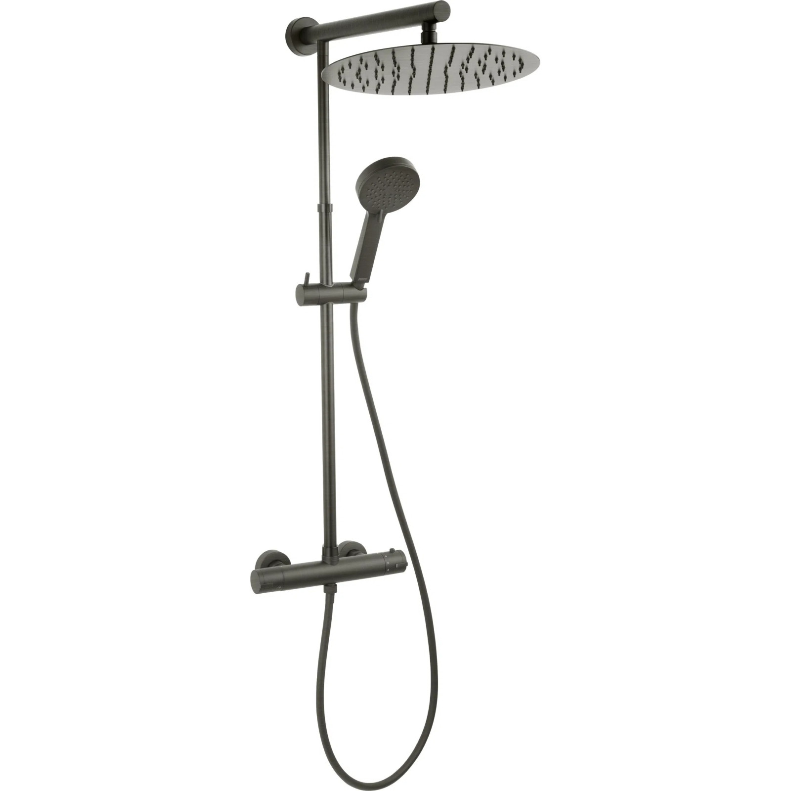 Setul de duș termostatic Ferro Trevi NP75-TRV7U-GM este perfect pentru orice baie datorită designului său modern și funcțional. Cap realizat din tablă de oțel SLIM cu diametrul de 300 mm. Sistemul anticalcar Ferro EasyClean asigură o întreținere ușoară și durabilă. Tija metalica reglabila cu lungime reglabila 800 - 1250 mm. Cap de duș fix din oțel inoxidabil. Comutator de dus din ceramica. Regulator de temperatura termostatic. Safe Stop 38°C - temperatura sigură a apei calde.