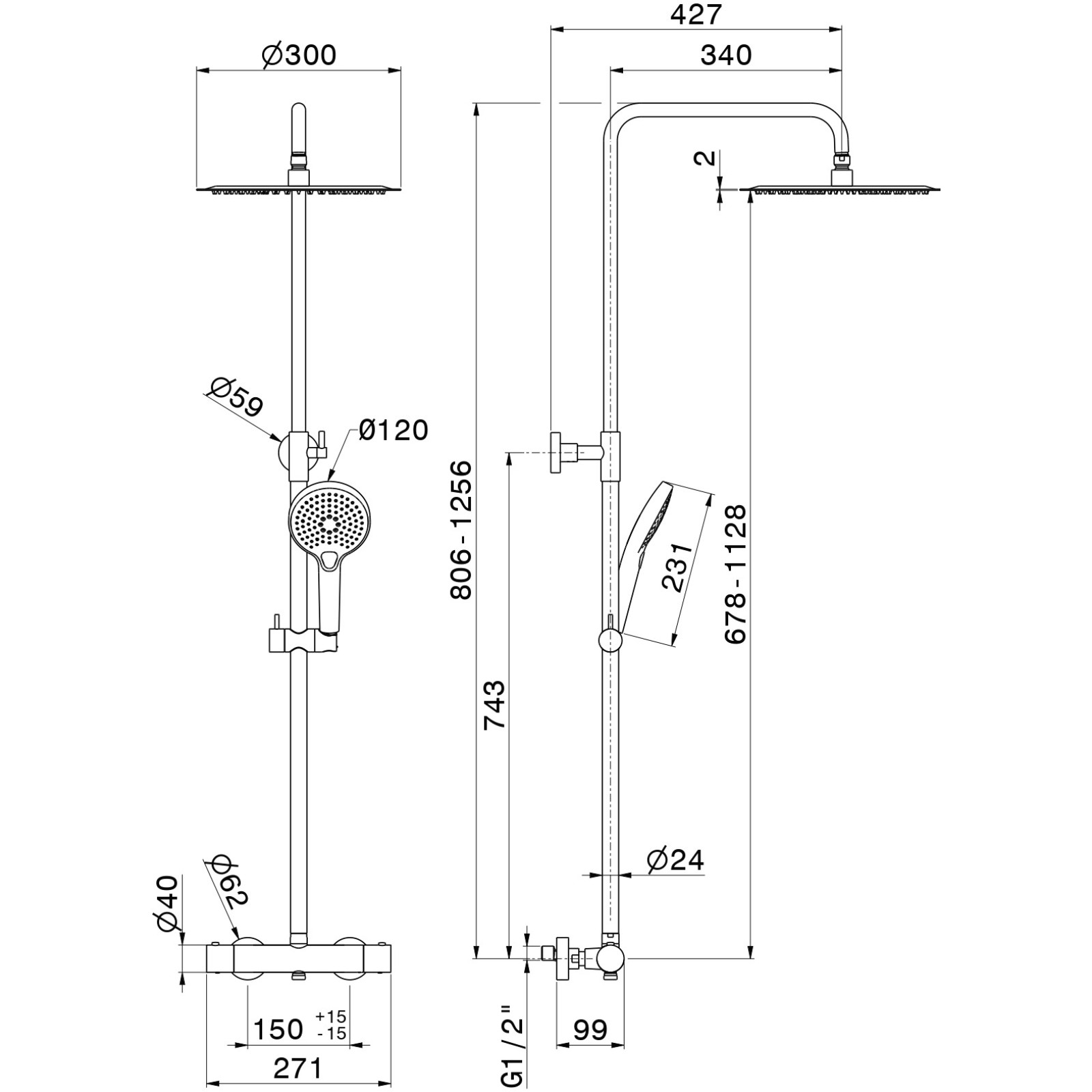 Set pentru dus Newform Rise-Up 61180.01.093 Black Matt