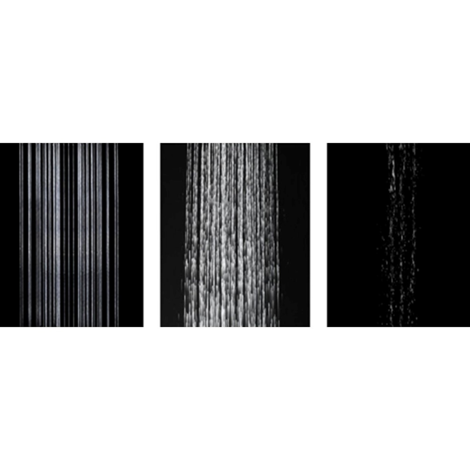 Duș fix pătrat din ABS, 25 cm, pară de duș cu 3 funcții, dușul fix este rotativ lateral.