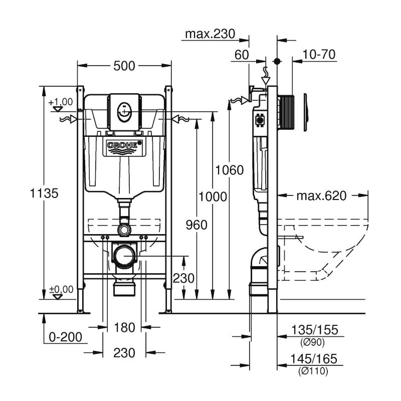 Rezervor WC încastrat pentru toaletă Grohe Rapid SL 38745001 dispune de o clapetă si ventil pneumatic de evacuare cu 3 moduri de operare: spălare lungă sau start/stop sau spălare scurtă. Toaleta suspendată și rezervorul încastrat asigură o igienă optimă și o curățare ușoară. Datorită tehnologiei de spălare dublă GROHE EcoJoy®, consumul de apă cu sistemele de instalare Rapid SL poate fi redus cu până la 50%. Proiectate cu tehnologia GROHE Whisper® pentru o izolație fonică îmbunătățită, sistemele de instalare Rapid SL oferă o protecție optimă împotriva zgomotului. Cadrul de oțel al sistemului de instalare este certificat pentru sarcini care depășesc 400 kg.