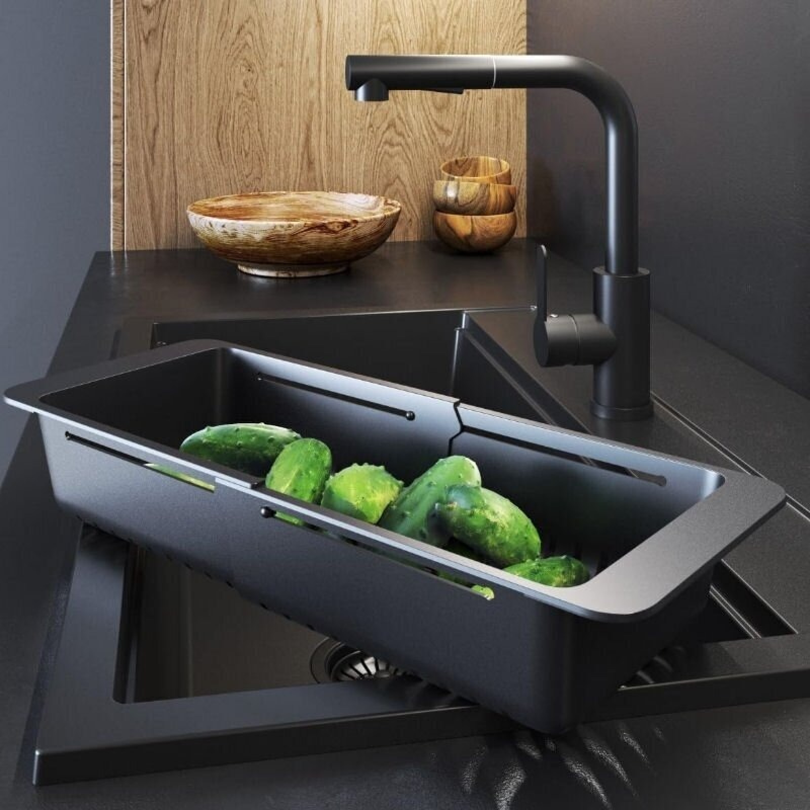 Strecurator pentru chiuveta Schock 629739 nu ocupă mult spațiu în bucătărie, este comod pentru dezghețarea produselor, uscarea tacâmurilor sau spălarea fructelor. Se regleaza în lungime de la 403 la 494 mm, Se potrivește aproape oricărei chiuvete. Dimensiuni 403 x 180 x 89 mm.