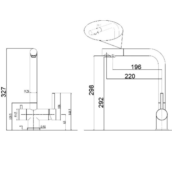 Robinetul (bateria) combinata Fabiano FKM 317 SS (2 în 1) dispune de două manete de control și aeratoare separate pentru reglarea debitului și filtrarea apei. Două ieșiri separate pentru apă (nu se amestecă în interiorul malaxorului). Unghi de pivotare de 360 de grade. Aerator economic din Neoprel. Aerator cu disc ceramic spaniol SEDAL de 35 mm pentru apă industrială. Furtunuri flexibile de 45 cm. Două filtre cu sită pentru impuritățile mecanice din apa industrială. Gaură de montare de 35 mm. Instalare simplificată (sistem de fixare cu manșon).