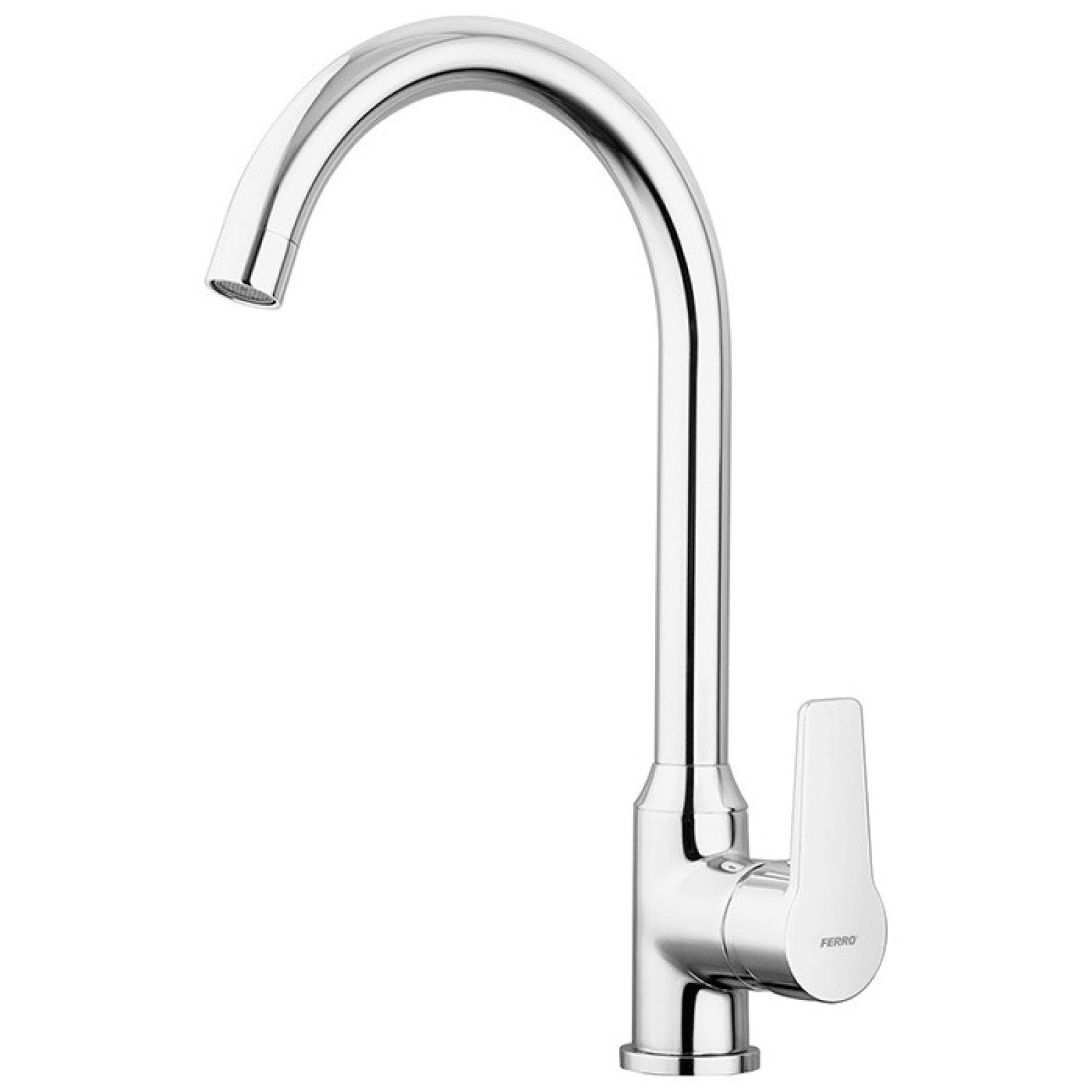 Baterie bucătărie Ferro Ritto BTR4 din alamă, cu pipă înaltă rotativă și cartuș ceramic de 35 mm. Aerator M22x1. Pipă rotativă. Racord flexibil G 3/8.