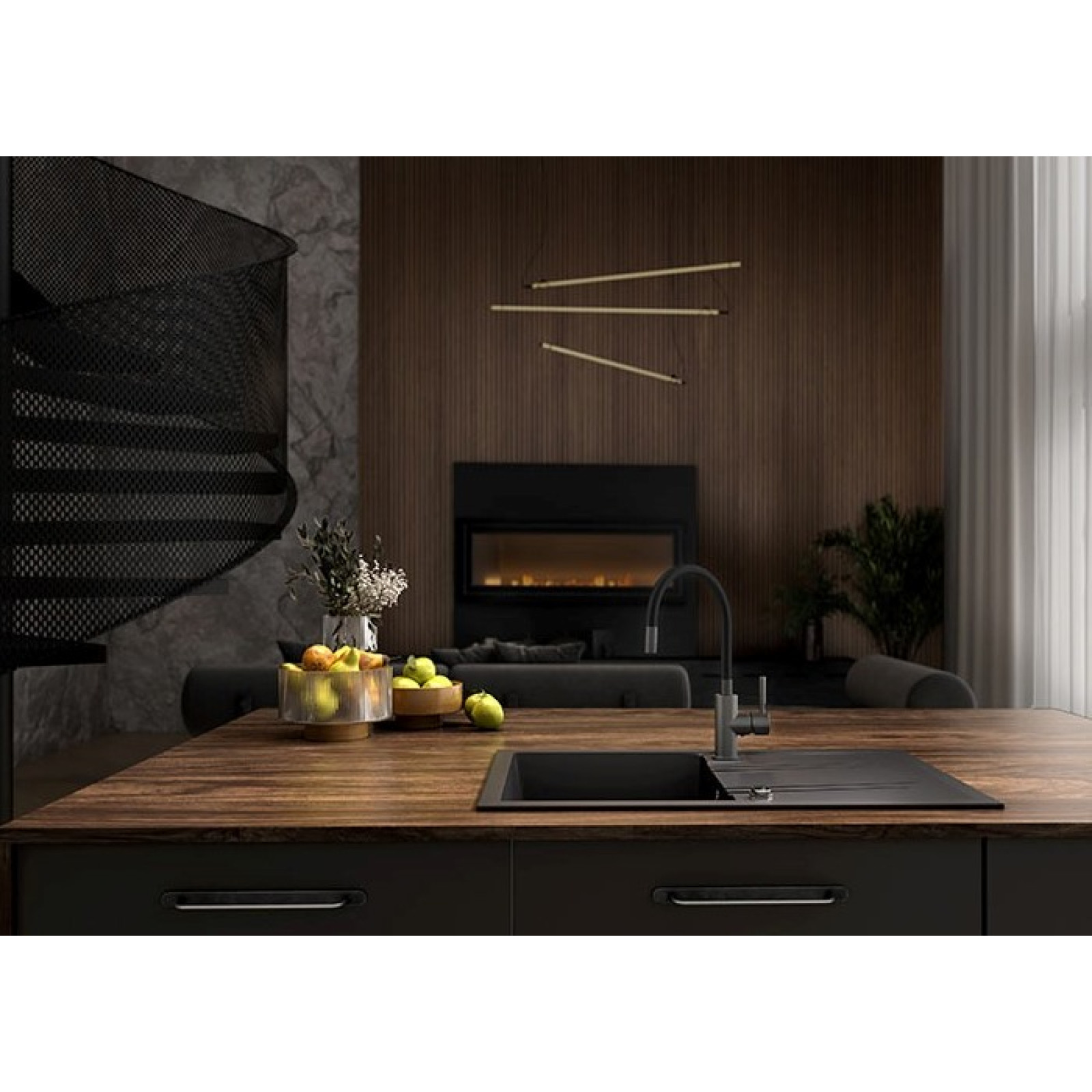 Baterie bucatarie Ferro Zumba BZA4BSSGM cu pipa flexibilă și pivotantă din alama cu cartus ceramic si gura flexibila. Aerator M22x1. Racord flexibil G 3/8.