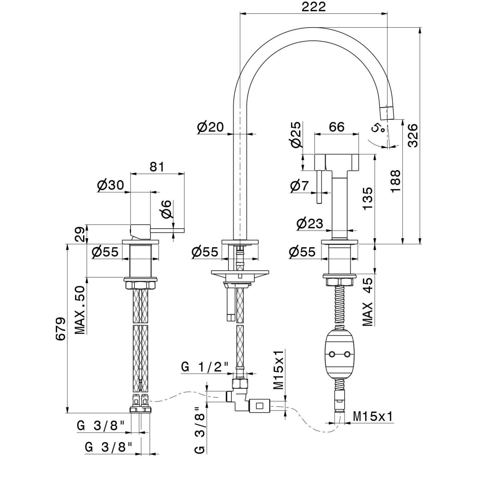 Baterie bucatarie Newform 3Holes 71730.01.093 Black Matt