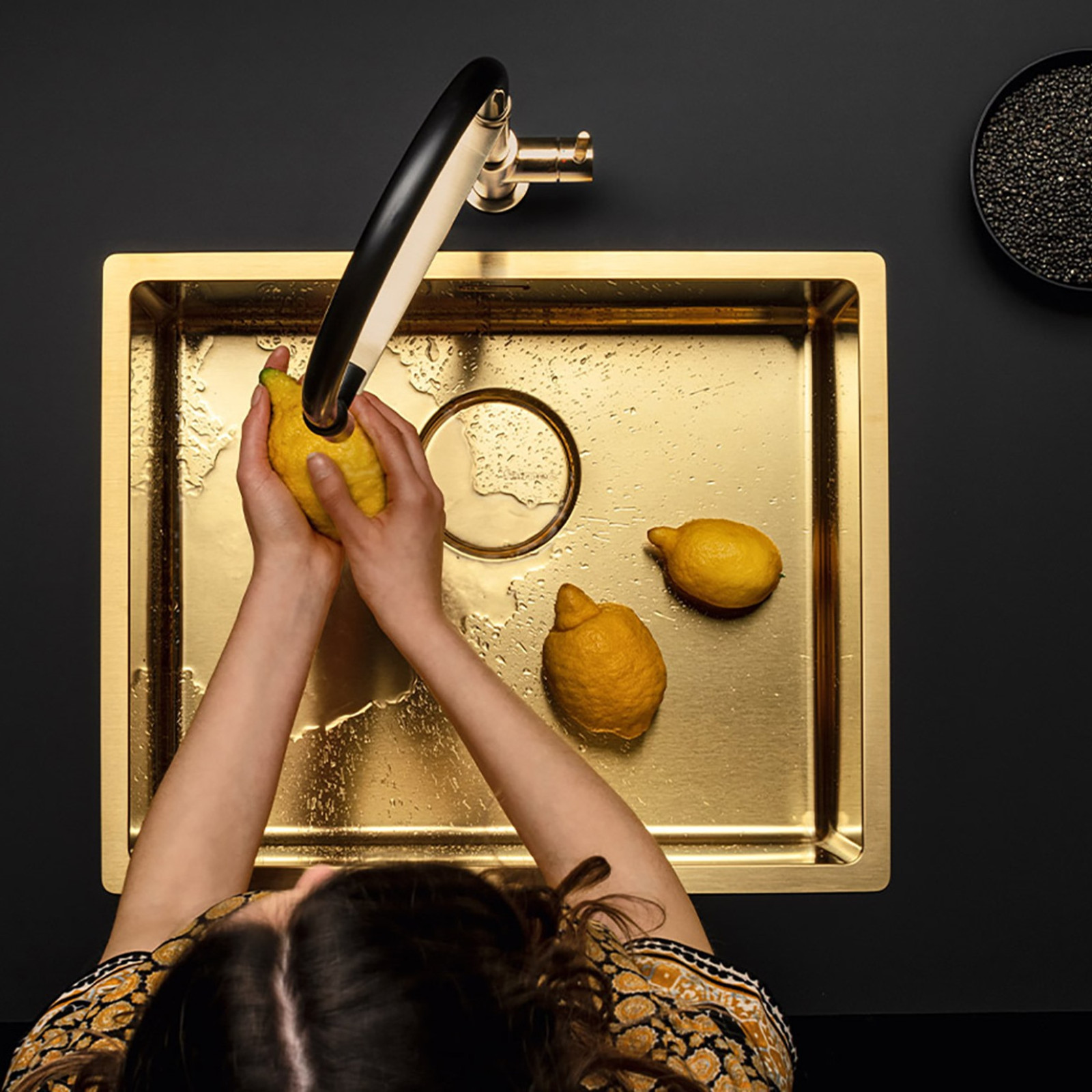 Sistemul de drenaj Falmec constă dintr-un capac rotund din oțel, la același nivel cu orificiul de scurgere evazat, asigurând drenajul perfect al apei și o curățare ușoară. Această soluție asigură, de asemenea, o continuitate vizuală perfectă și o consistență materială perfectă pe fundul chiuvetei, ascunzând partea funcțională și creând un echilibru geometric perfect.