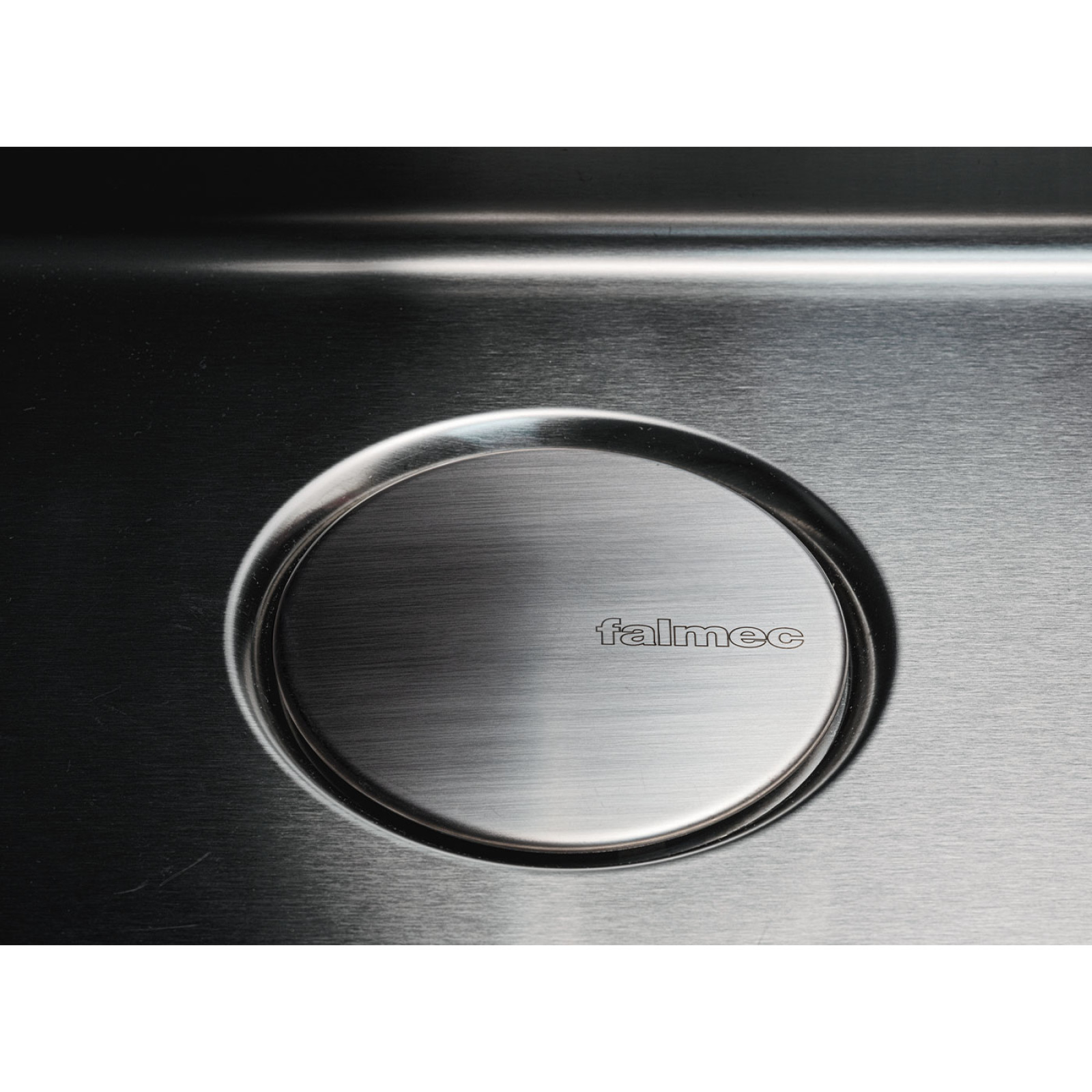 Sistemul de drenaj Falmec constă dintr-un capac rotund din oțel, la același nivel cu orificiul de scurgere evazat, asigurând drenajul perfect al apei și o curățare ușoară. Această soluție asigură, de asemenea, o continuitate vizuală perfectă și o consistență materială perfectă pe fundul chiuvetei, ascunzând partea funcțională și creând un echilibru geometric perfect.