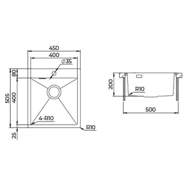 Dimensiuni chiuveta 450x505x200 mm. Dimensiuni bol 400x400x200 mm.
