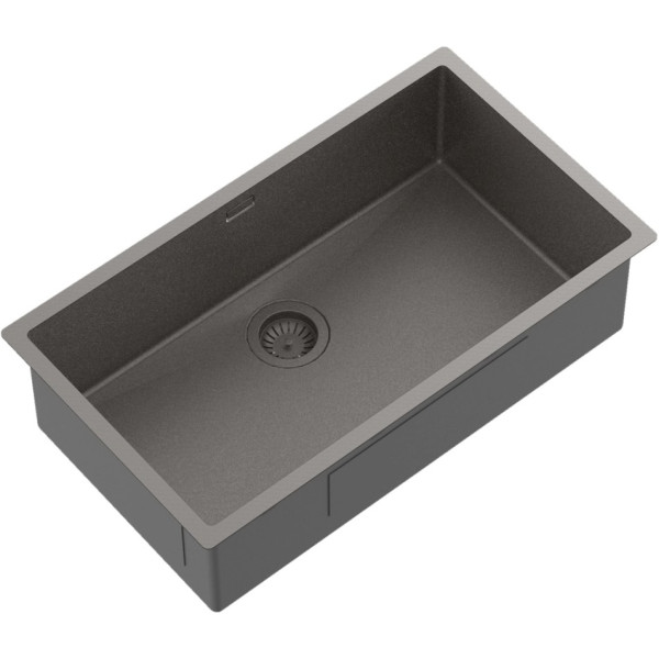 Chiuveta de bucatarie cu montare sub blat Helika Nova 100B-T realizata din inox de 2 mm grosime cu acoperire PVD de culoare grafit. Datorită unei tehnologii speciale de aplicare a PVD de suprafață, are o nuanță unică și o calitate impecabilă.